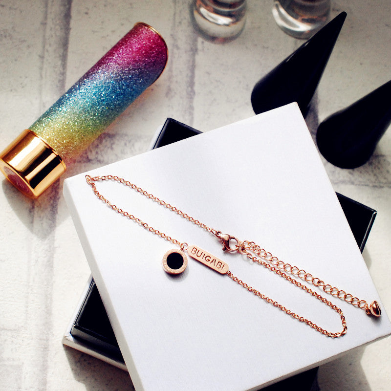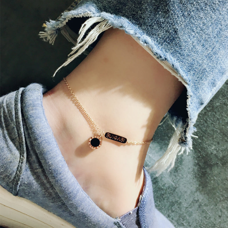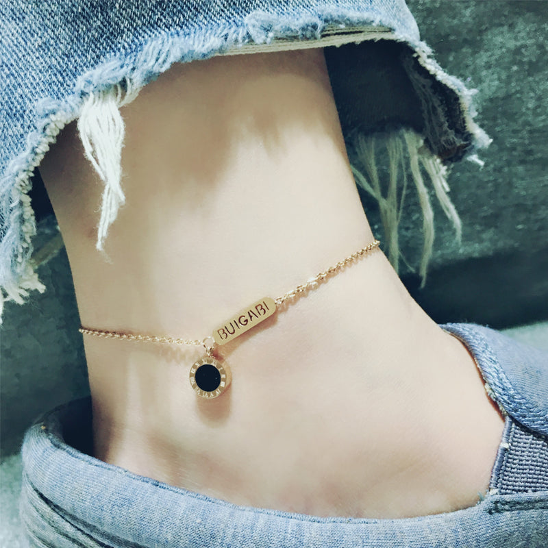 Anklets- Luxury Famous Brand Jewelry Roman numerals Anklet Women Rose Gold Color Stainless Steel Ladies Jewelry Not Fade