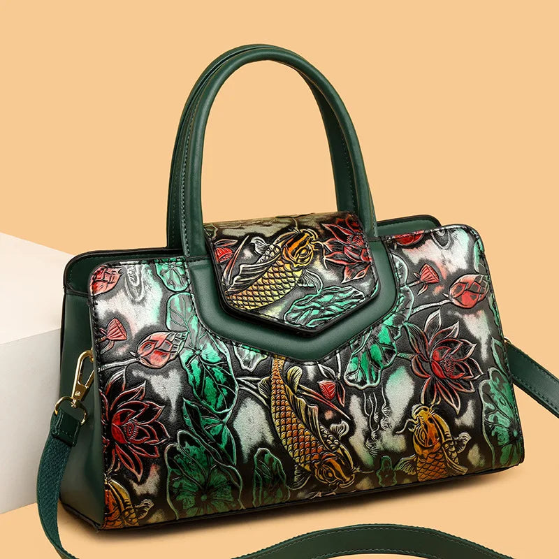 Luxury Fashion Shoulder Bag for Women Floral Patterned Leather Boston Handbags