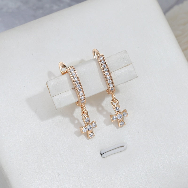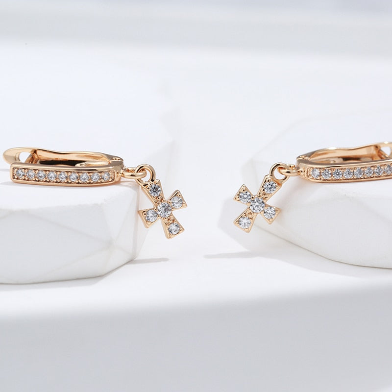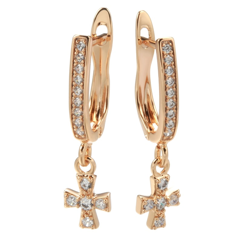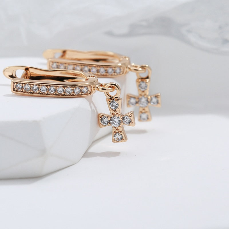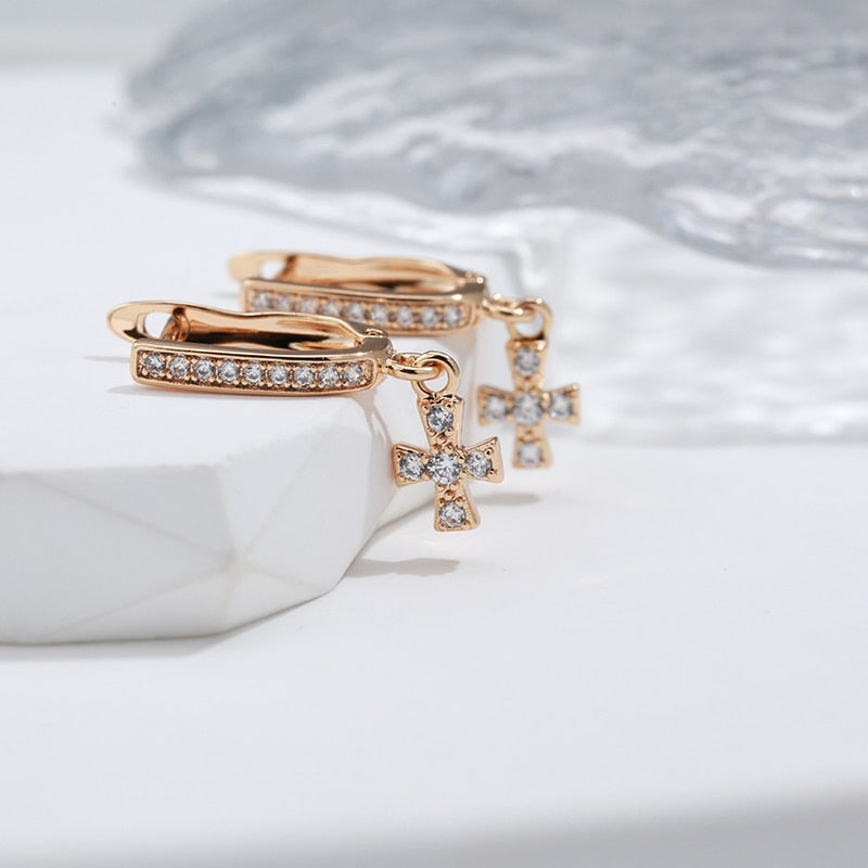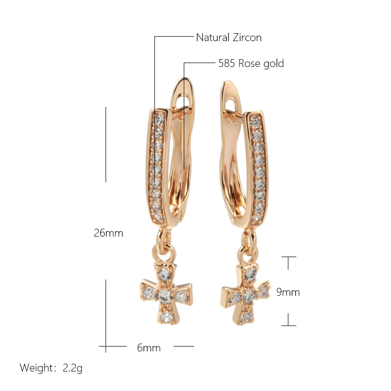 585 Gold Jewelry-Luxury Full White Zircon Cross Pendant Earrings Vintage 585 Rose Gold Color Fashion Wedding Jewelry Women Trendy Earring Gift