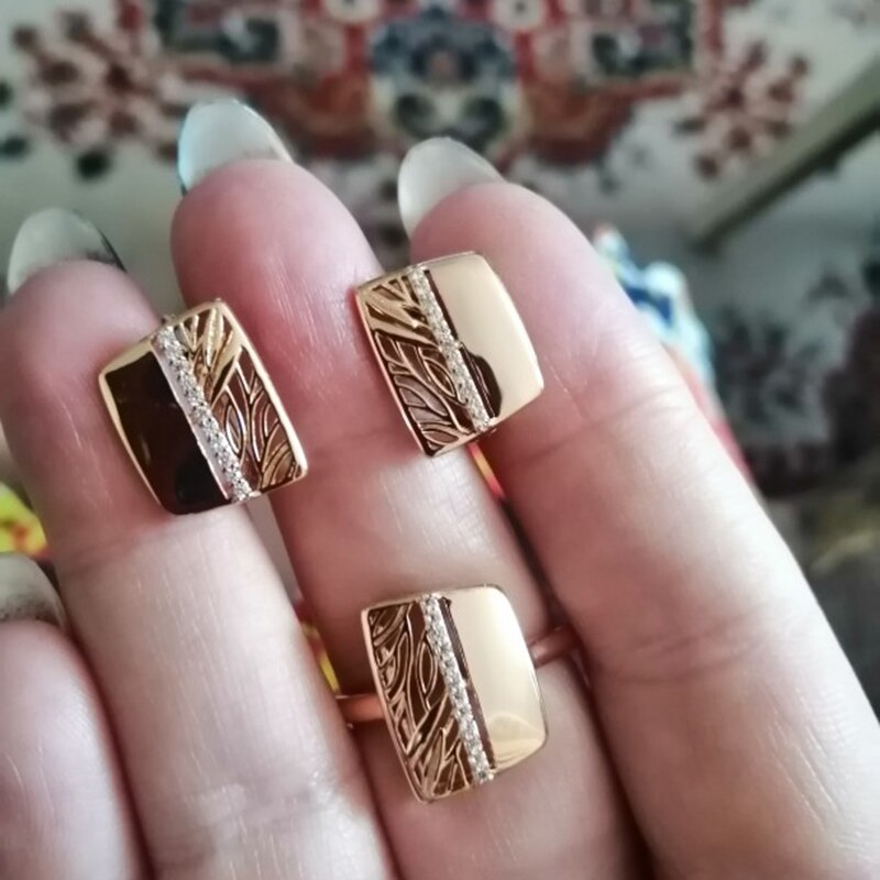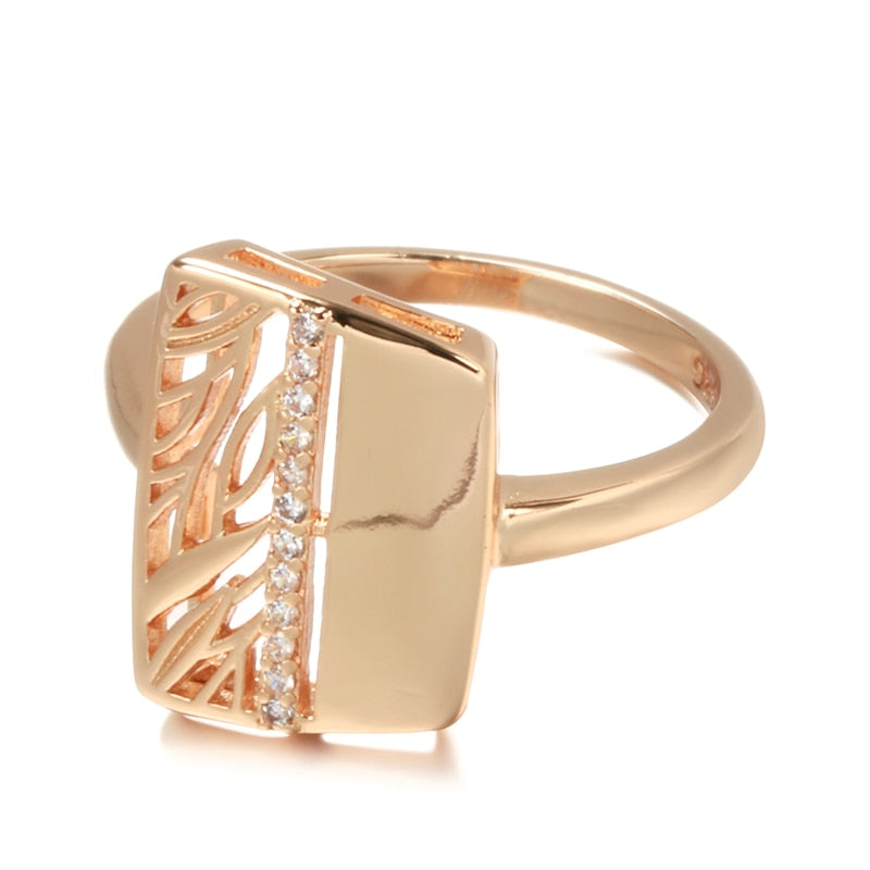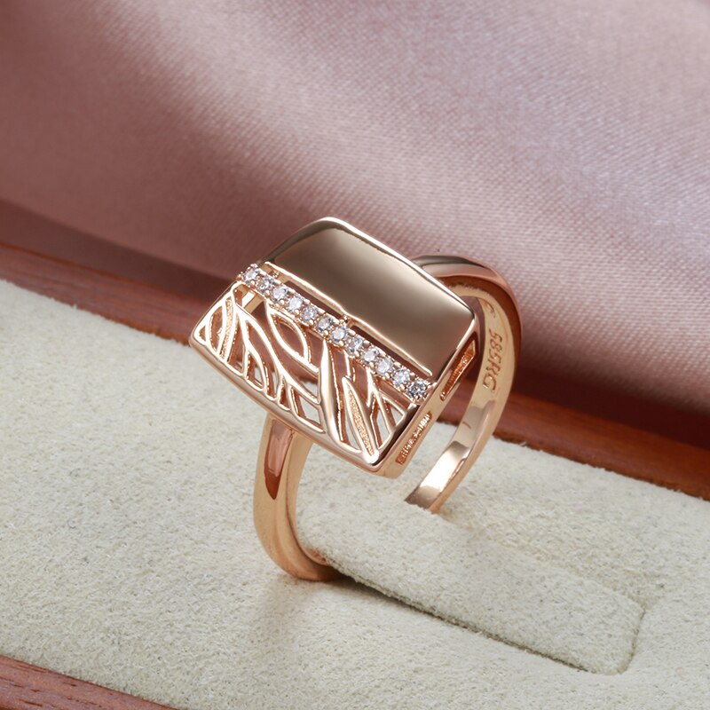 585 Gold Jewelry-Luxury Glossy Leaf Ring For Women Fashion 585 Rose Gold With Natural Zircon Square Ring Vintage Wedding Jewelry Fashion