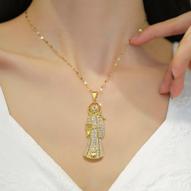 585 Gold Jewelry-316L Stainless Steel Luxury Jewelry Death Scythe Shaped Pendant Necklace For Women Exaggerate Bohemian Jewelry