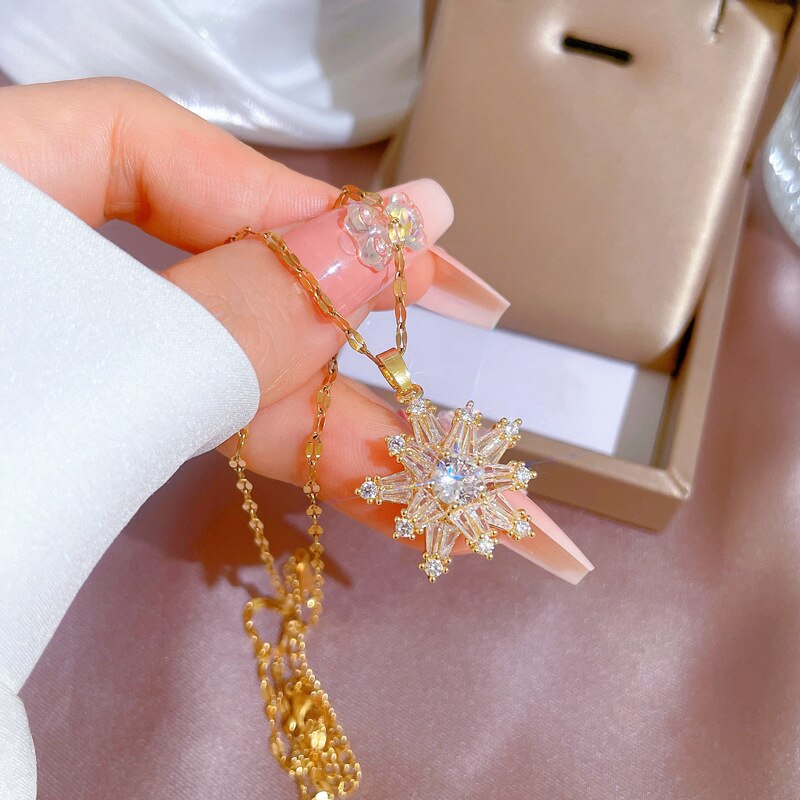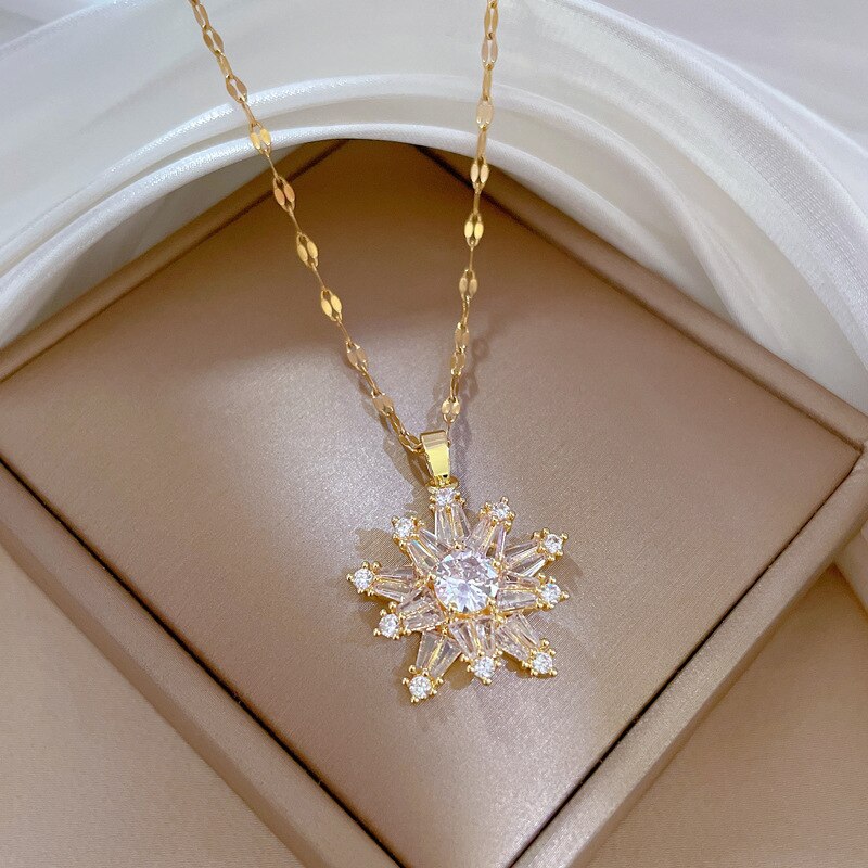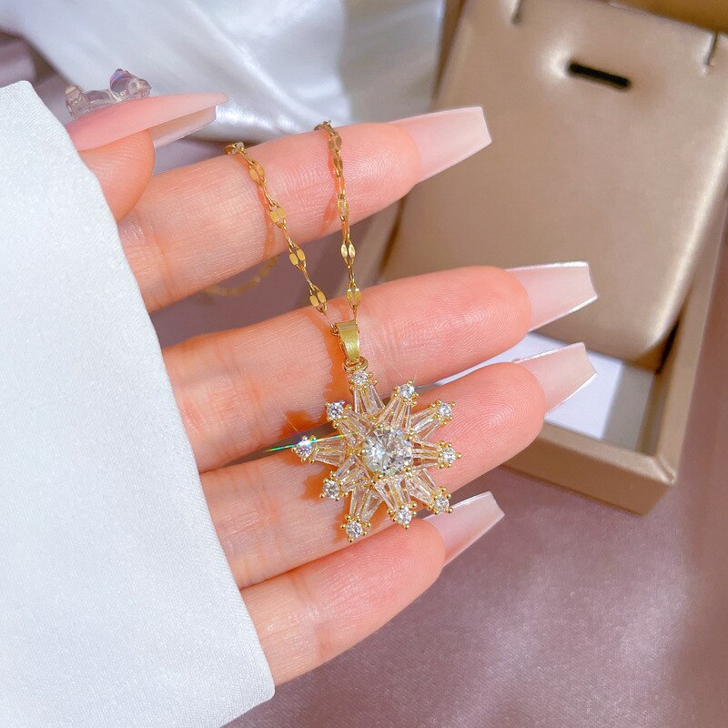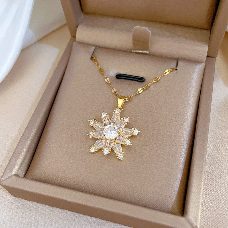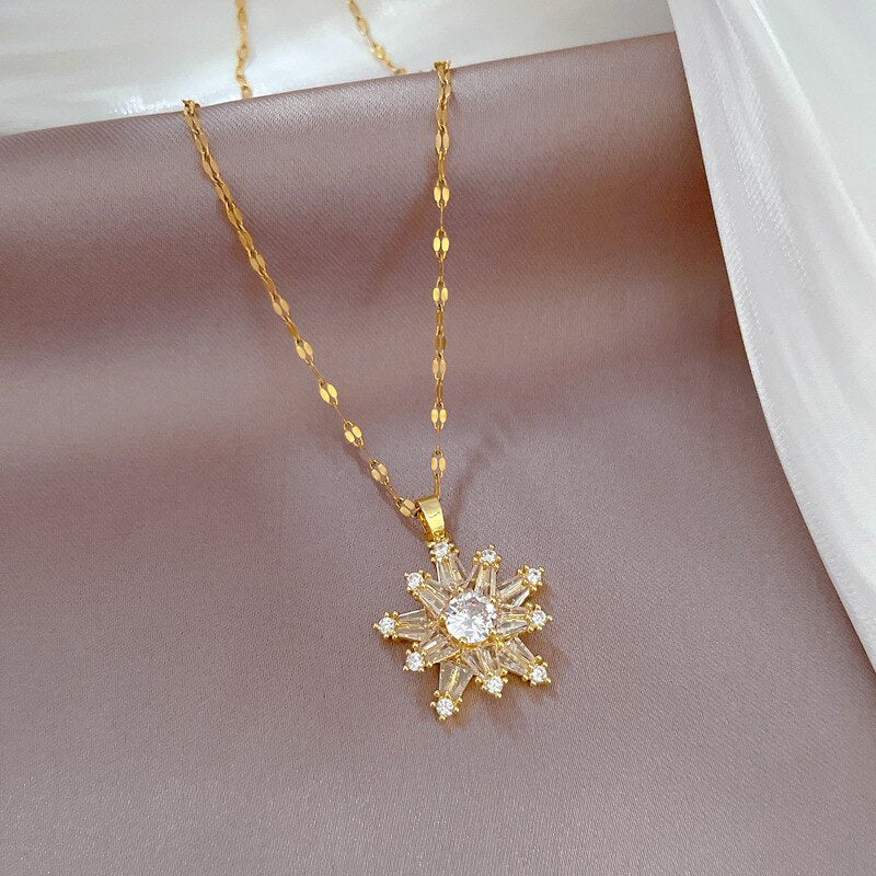 585 Gold Jewelry-316L Stainless Steel Luxury Jewelry Full Crystal Snowflake Pendant Necklace For Women Wedding Flower Jewelry