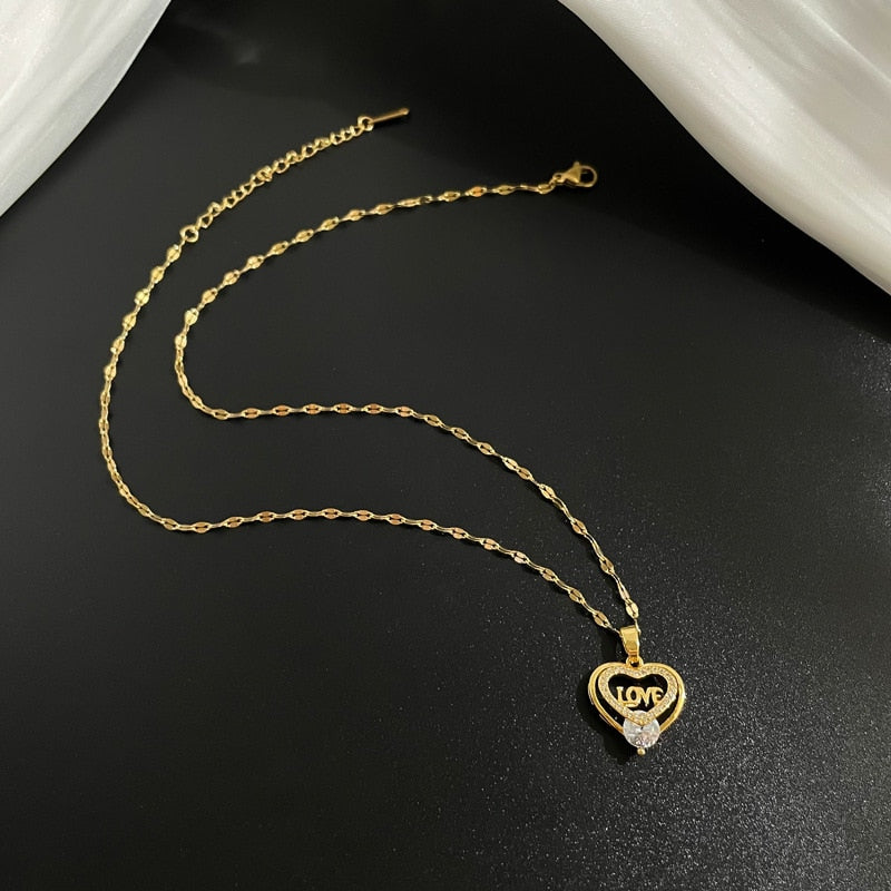 585 Gold Jewelry-Stainless Steel Luxury Jewelry Geometry Eternal Love Pendant Choker Necklace For Women Wedding Accessories
