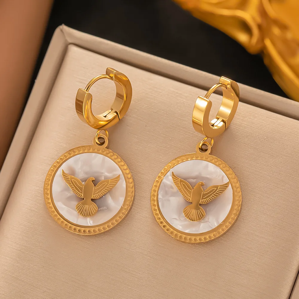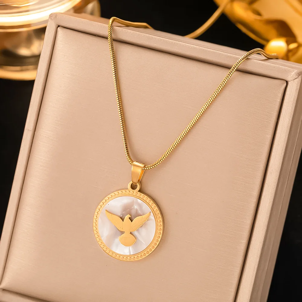 585 Gold Jewelry-316L Stainless Steel Luxury Jewelry Set 18K Gold Plated for Women Dove Of Peace Pendant Necklaces Earrings Party Gifts