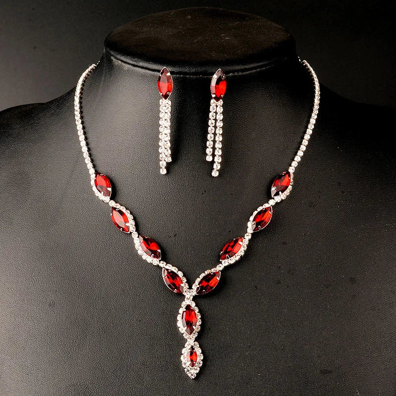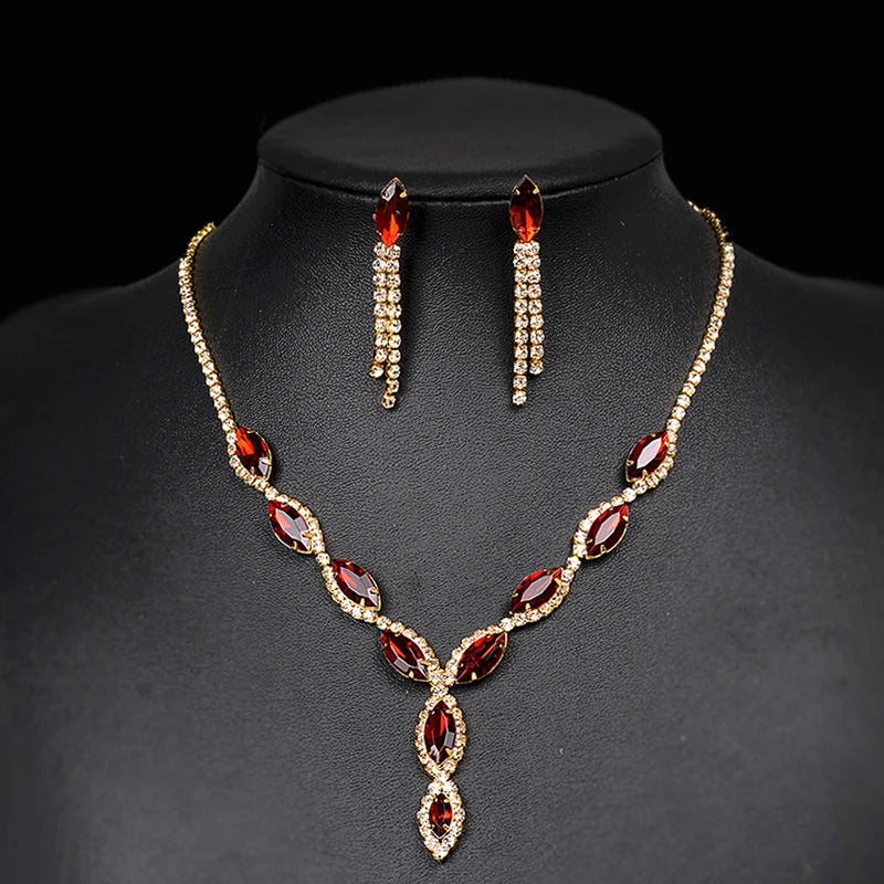 Luxury Rhinestone Crystal Jewelry Set Shiny Water Drop Shaped Necklace Drop Earrings For Women