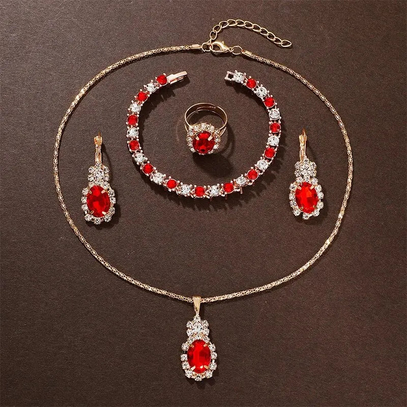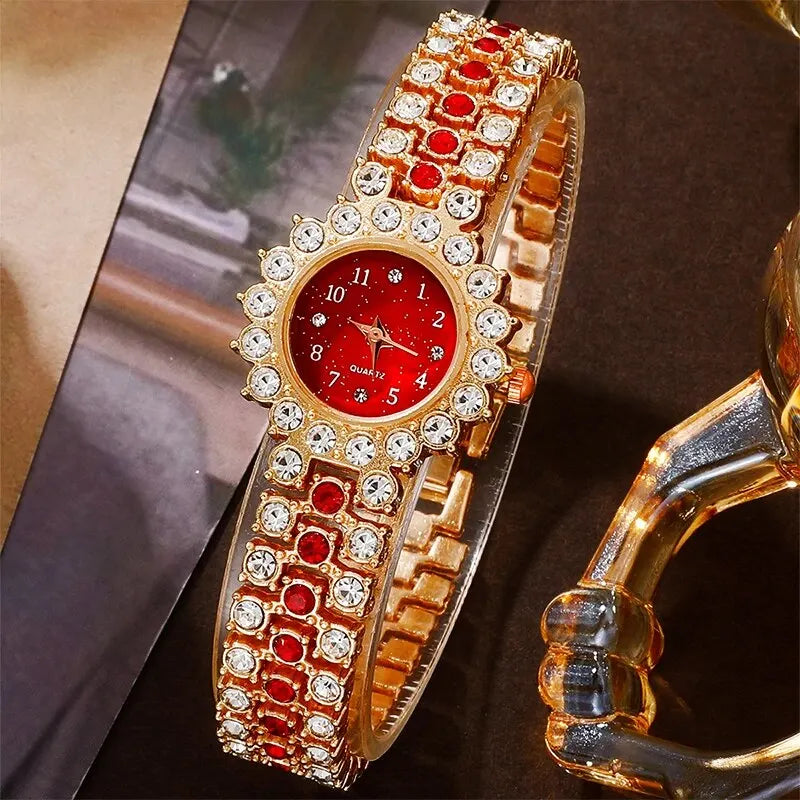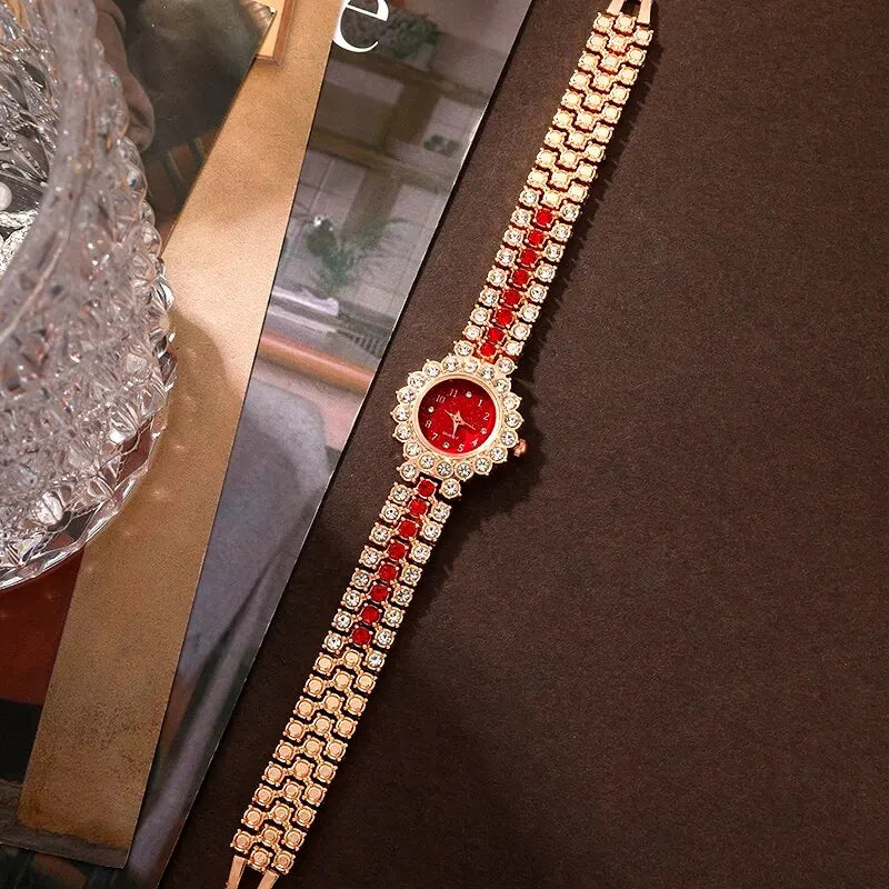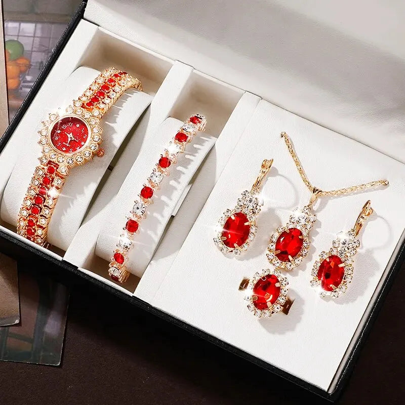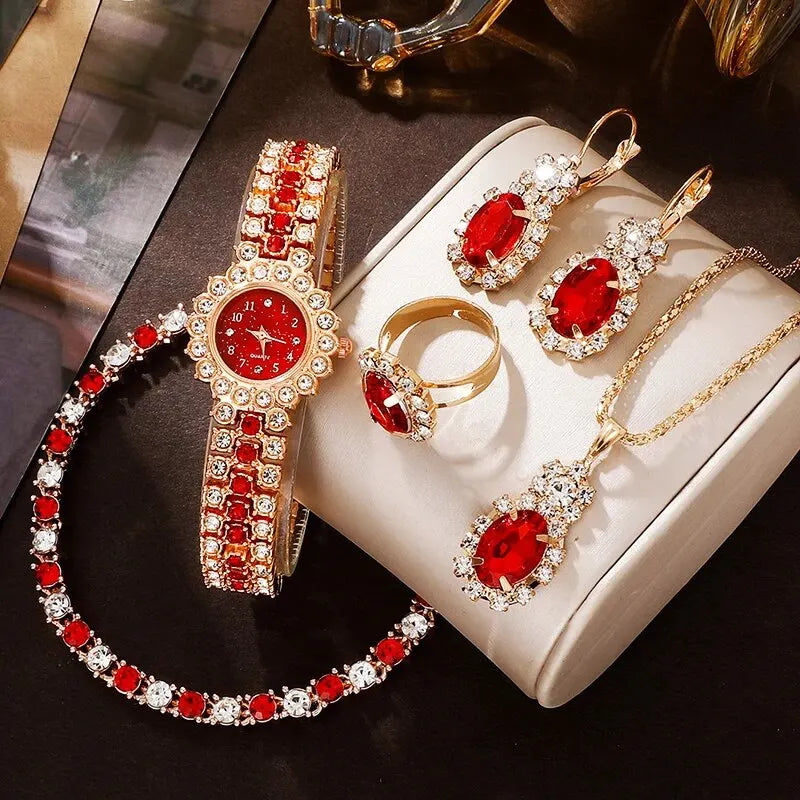 Luxury Watch Women Ring Necklace Earring Rhinestone Fashion Wristwatch