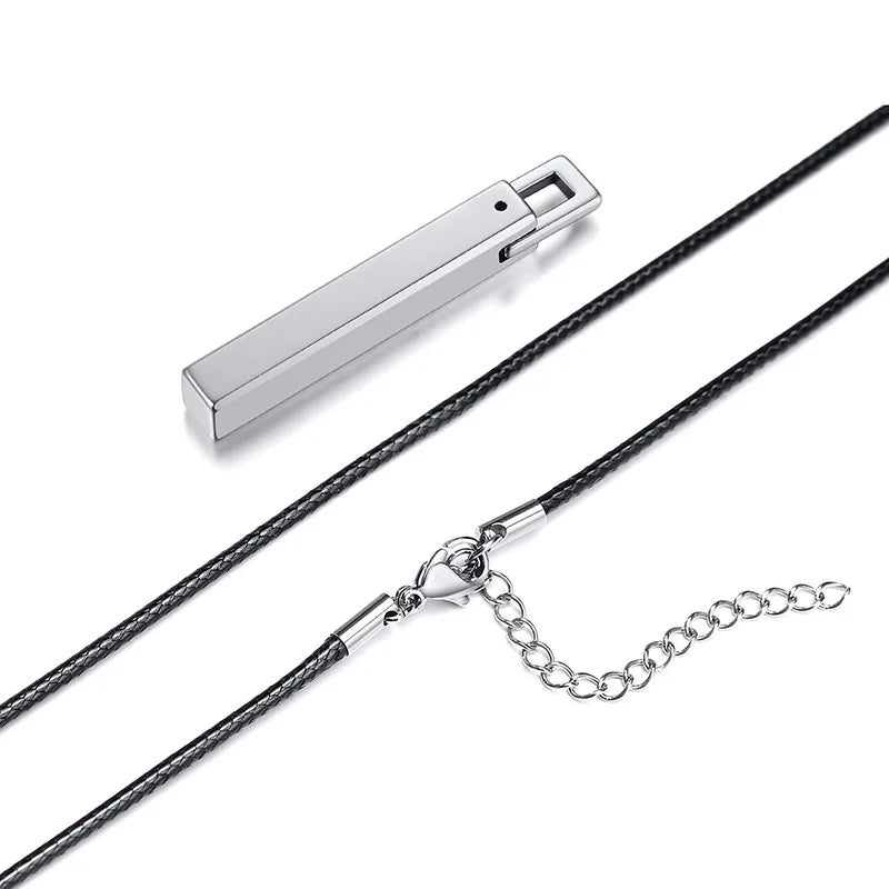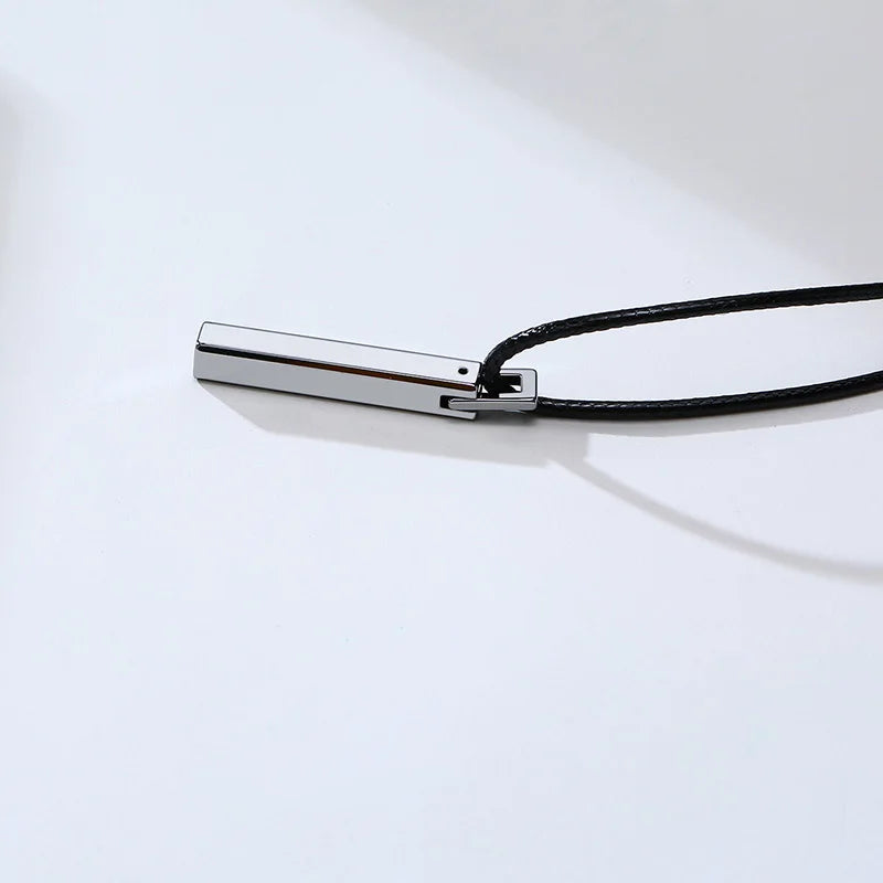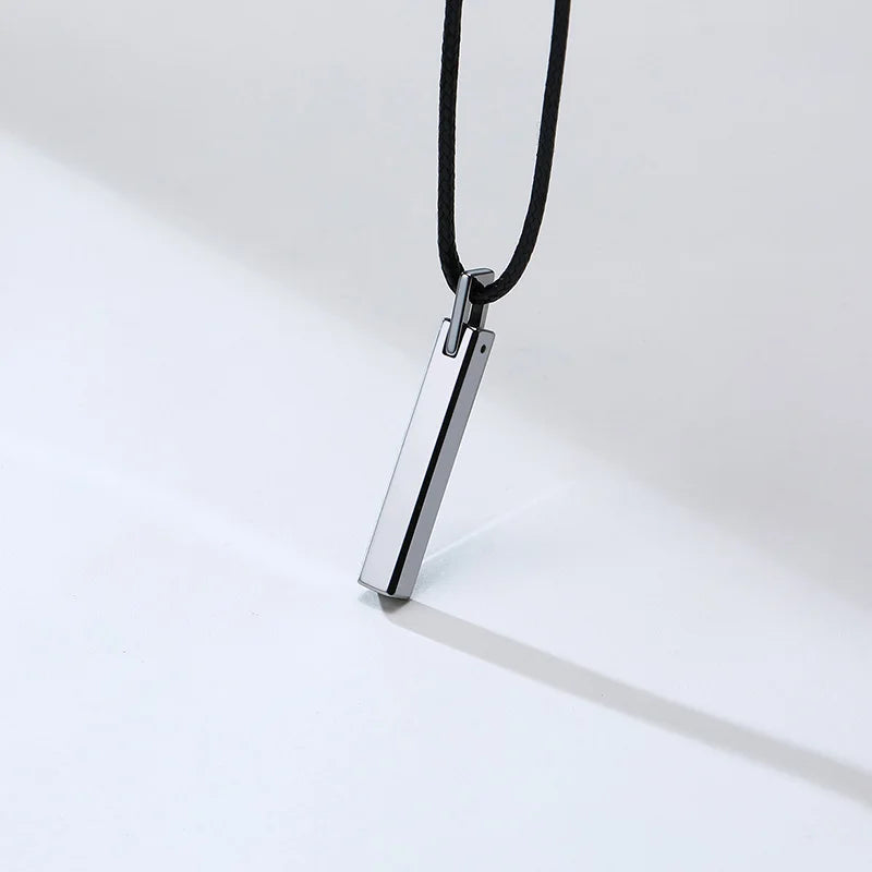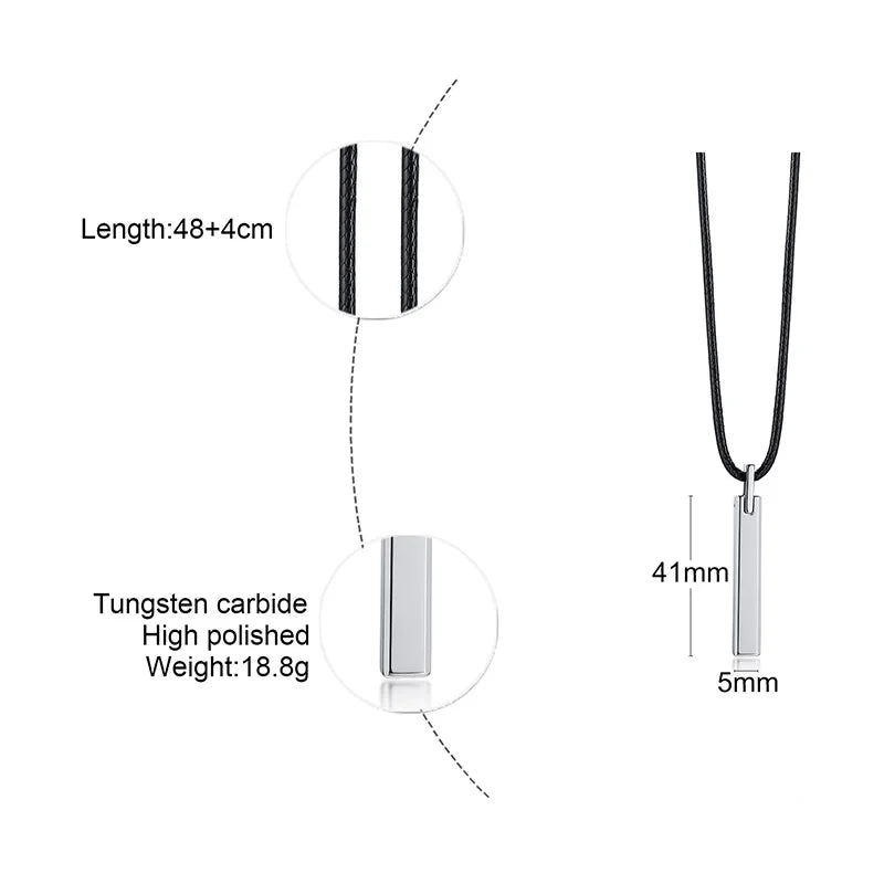 Men Bar Choker Tungsten Carbide Pillar Pendant with Black Rubber Cord Chain Necklaces Collares Colar Kolye Male Jewelry 20"