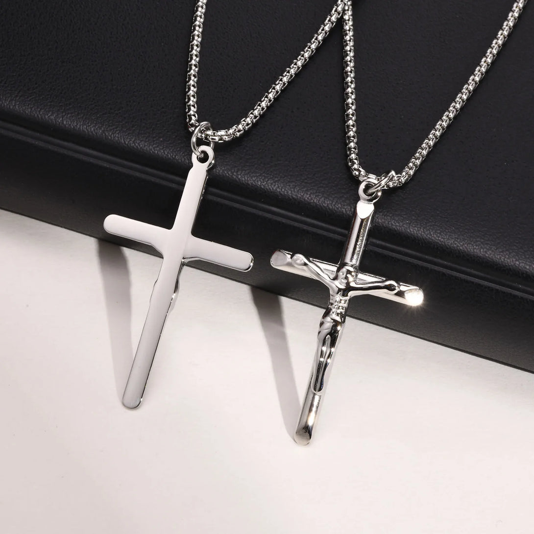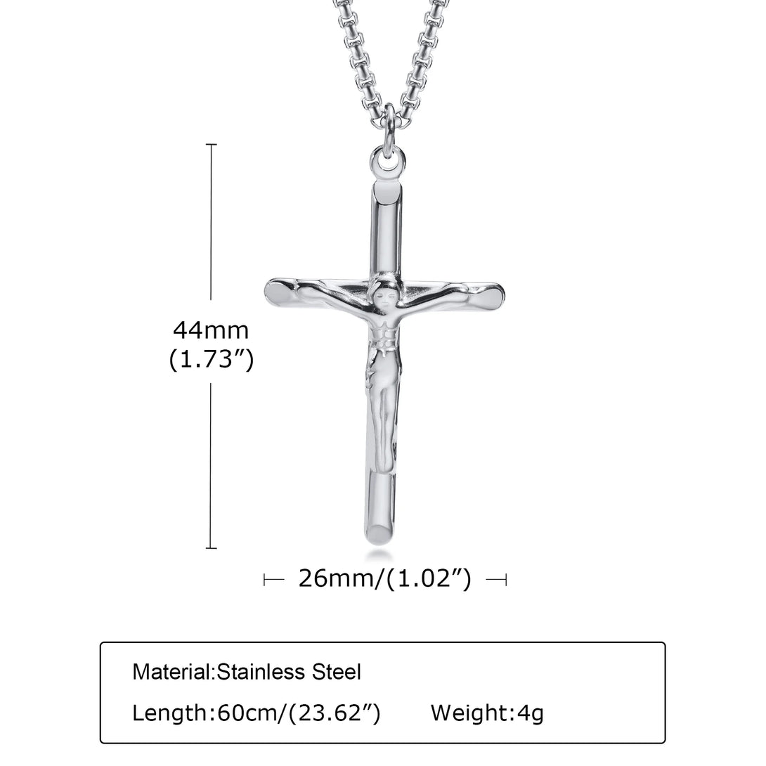 Men Catholic Jesus Christ Cross Crucifix Pendant Necklaces,Waterproof Stainless Steel Religious Prayer Collar Gifts Jewelry
