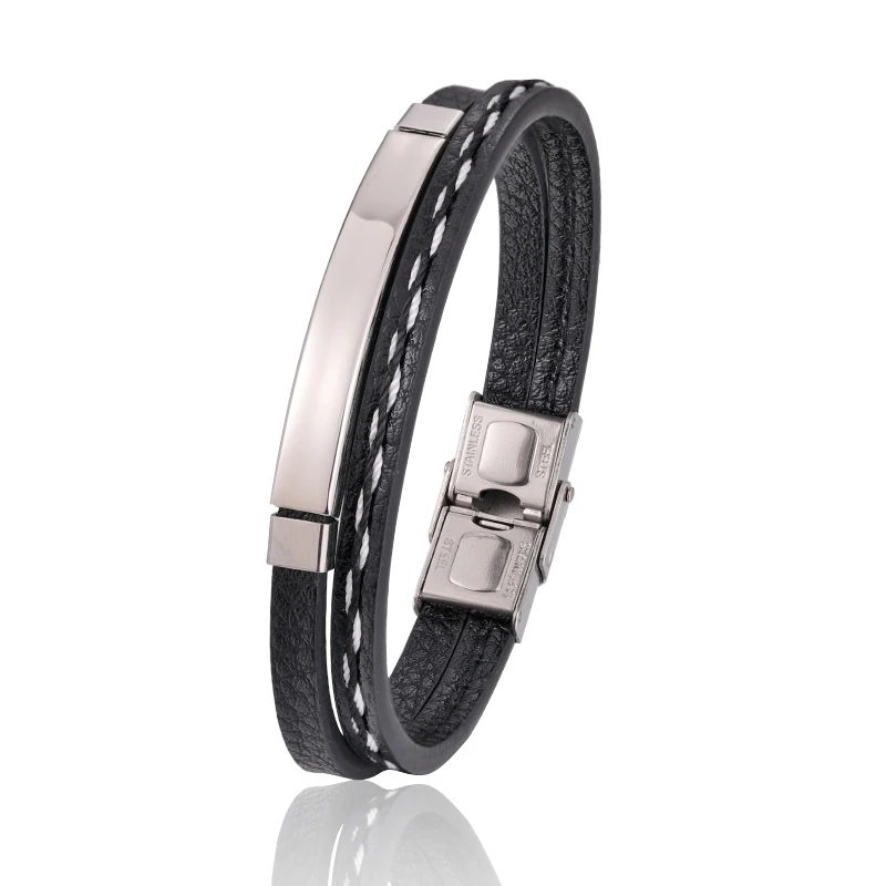 Leather Bracelet- Business Men Custom Name Men Charm Bracelet Stainless Steel Leather Fashion Women Cuban Bracelet Adjustable length Boy Gift