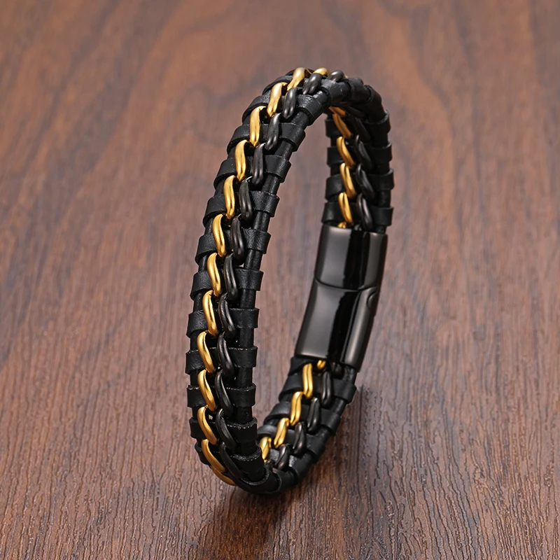 Leather Bracelet-TeHao Men Charm Genuine Leather Chain Bracelet Bangles Magnetic Stainless Steel Buckle Fashion Casual Bracelet