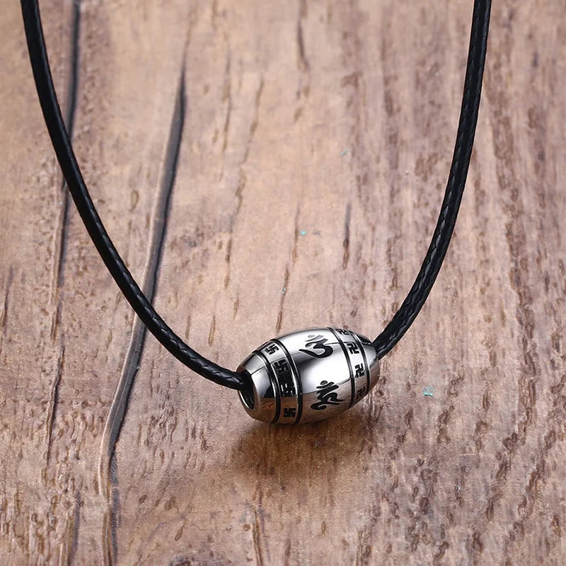 Men Choker Stainless Steel 6 & 9 words Buddha Mantra Gossip Yin Yang Lucky Bead Pendant Necklace Black Braided Rope Male Jewelry