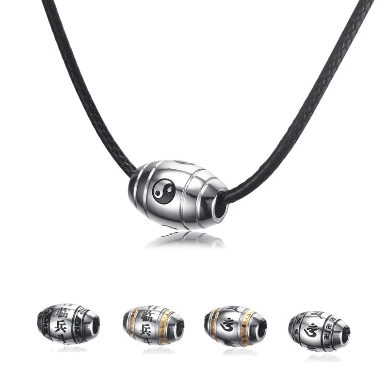 Men Choker Stainless Steel 6 & 9 words Buddha Mantra Gossip Yin Yang Lucky Bead Pendant Necklace