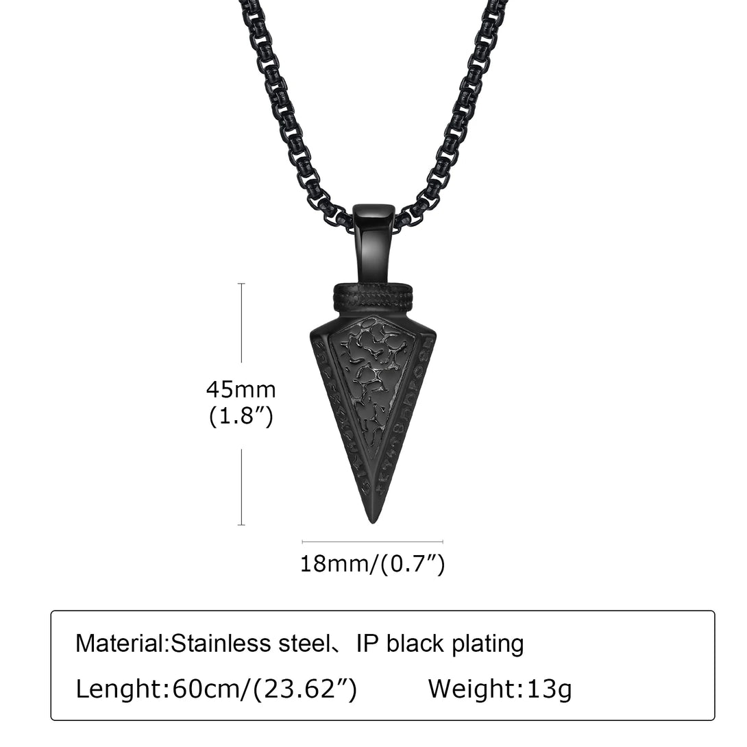 Men Cool Gothic Arrow Head Necklaces, Waterproof Stainless Steel Spear Pendant Collar, Rock Punk colar masculino