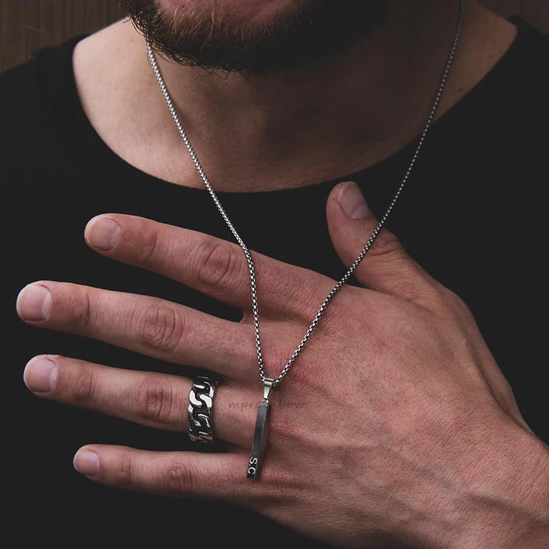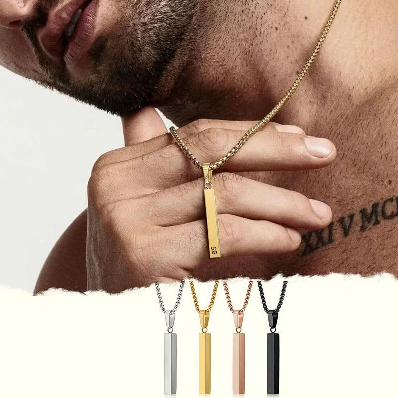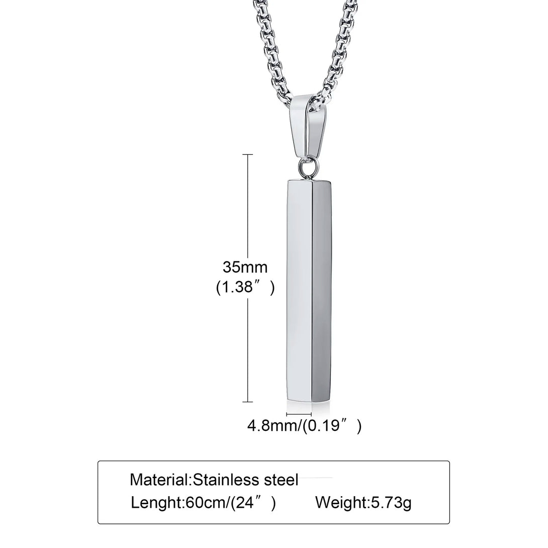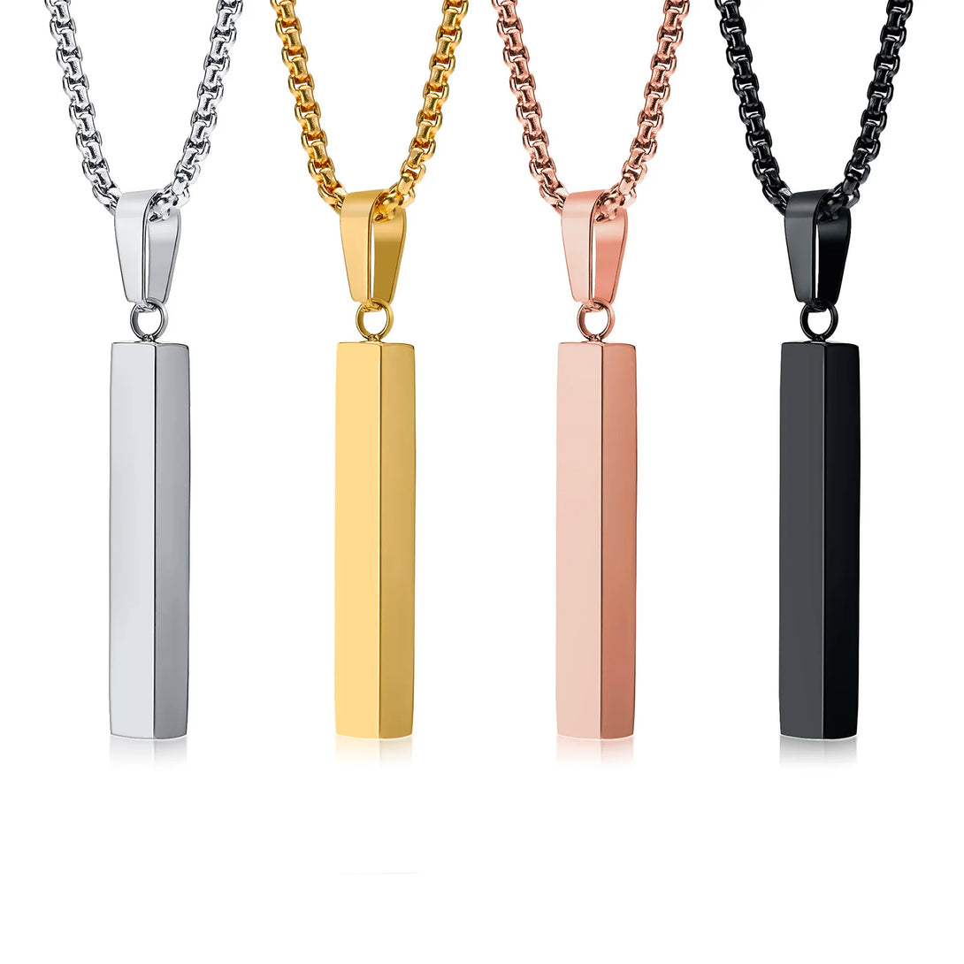 Men Custom Engraving Names Rectangle Bar Necklace, 3D Square Geometric Stainless Steel Pendant Collar Gift Jewelry