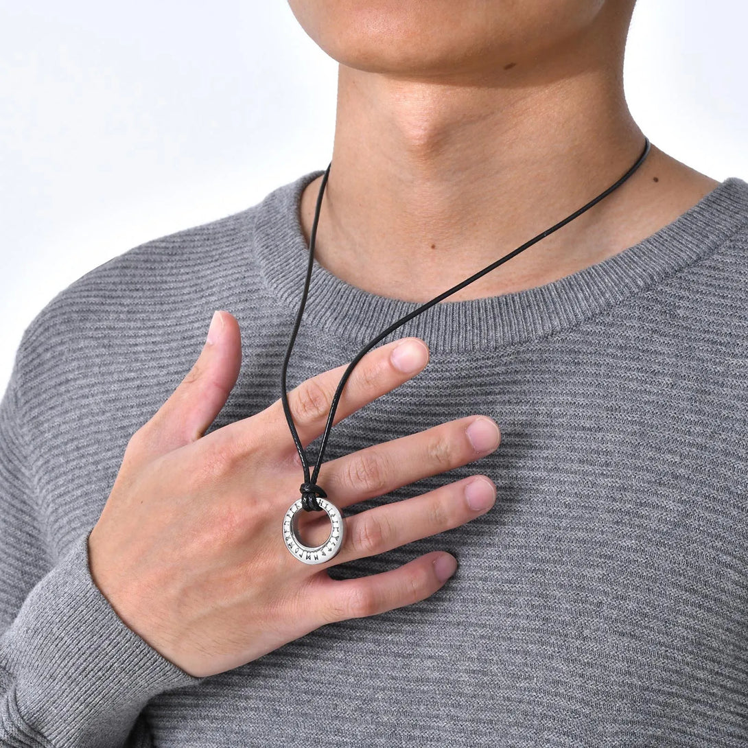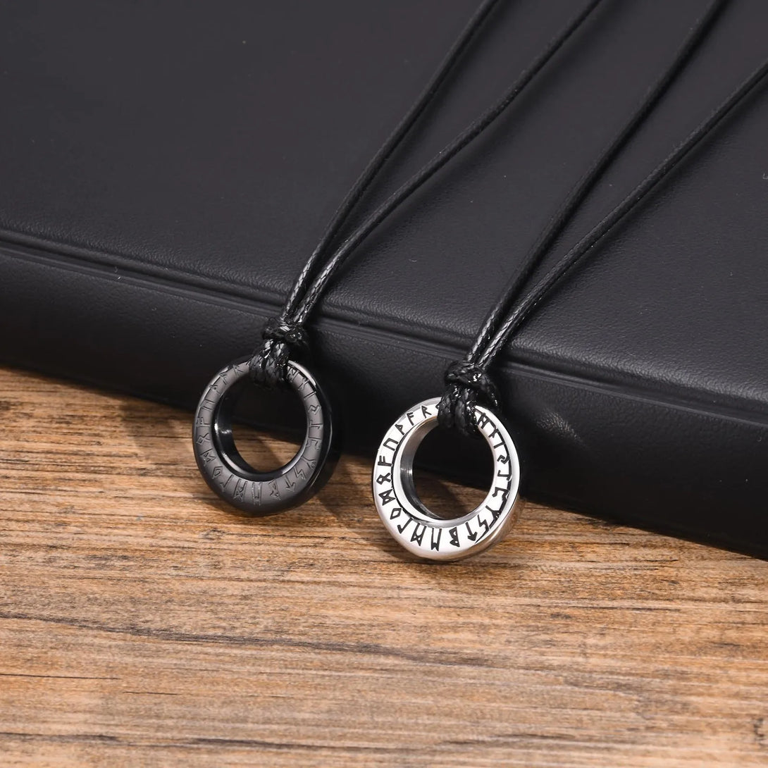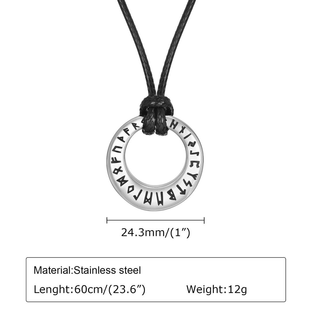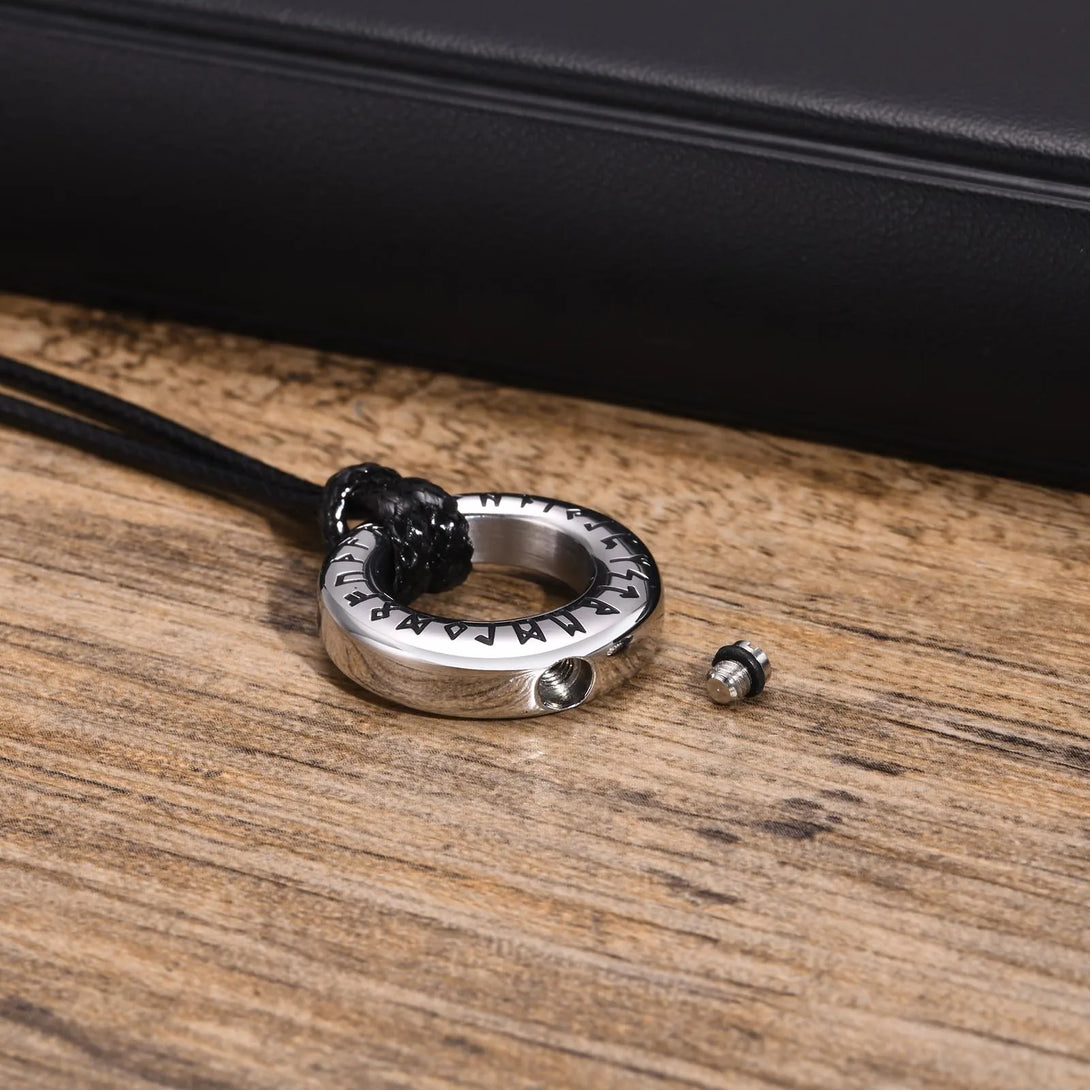 Men Norse Viking Urn Necklaces,Waterproof Stainless Steel Round Pendant with Black Rope Chain,Keepsake Gifts for Him