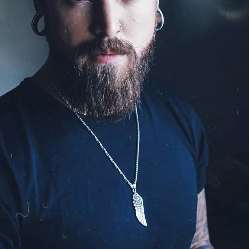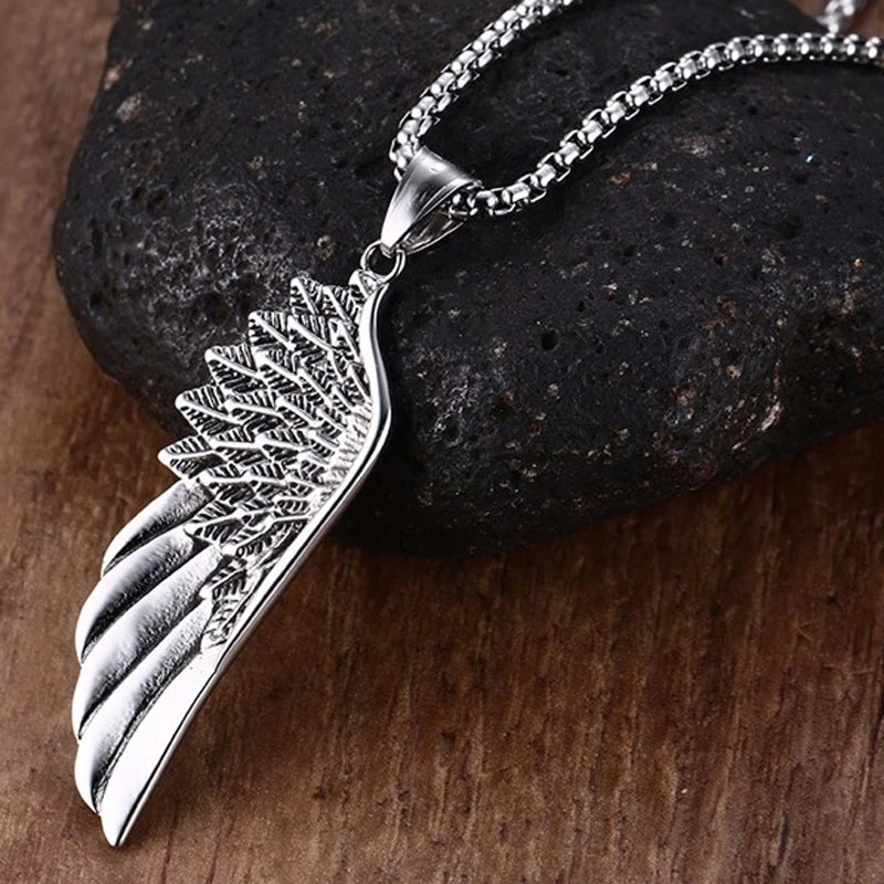 Men Pendant Necklaces, Gothic Vintage Angel Wings Feather Pendant Stainless Steel Necklaces. Man Jewely