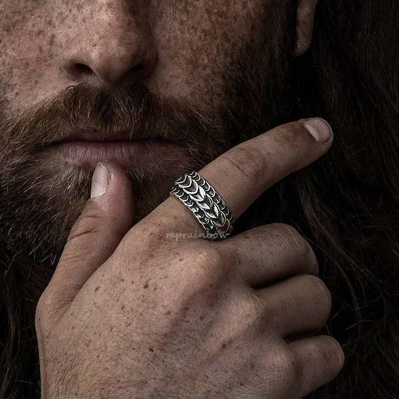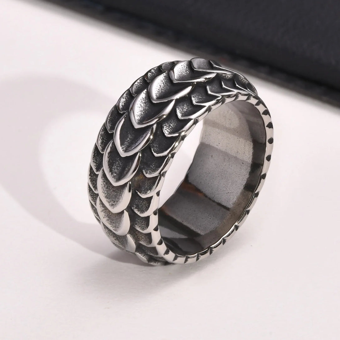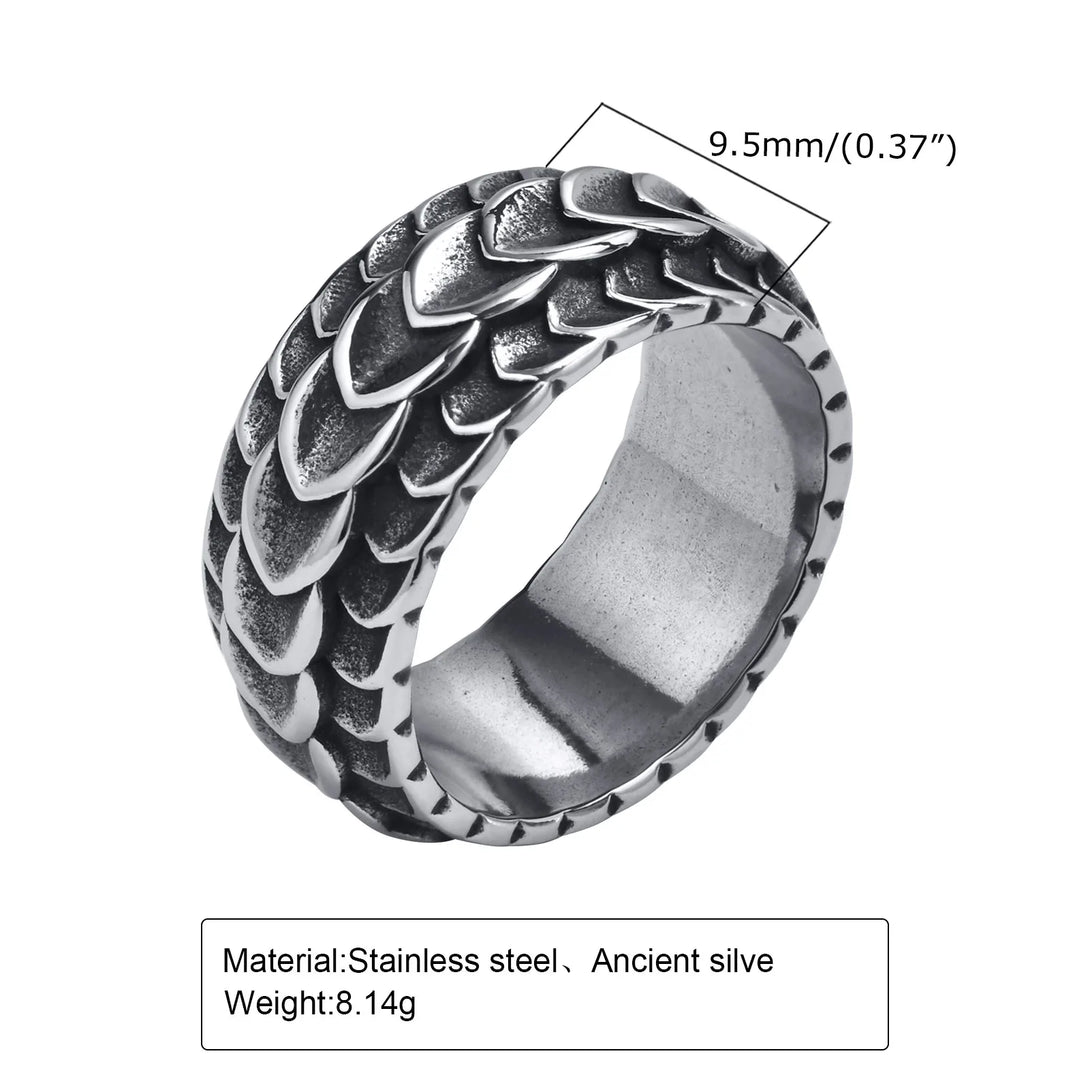 Men Rings,Dragon Scale Ring,Stainless Steel Ring Norse Viking Dragon Spine Ring, Men's Wedding Band