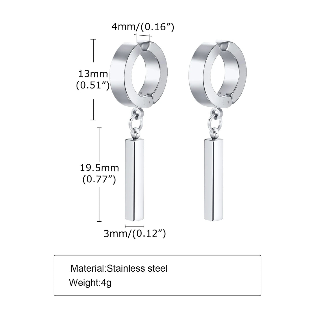 Men Simple 3D Bar Huggie Earrings Gift Jewelry, Waterproof Stainless Steel Solid Geometric Earrings No Piercing Accessory