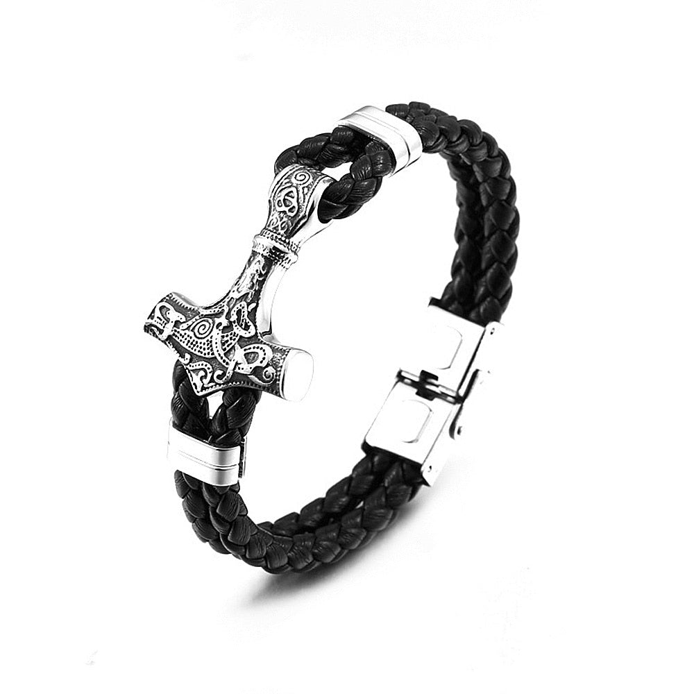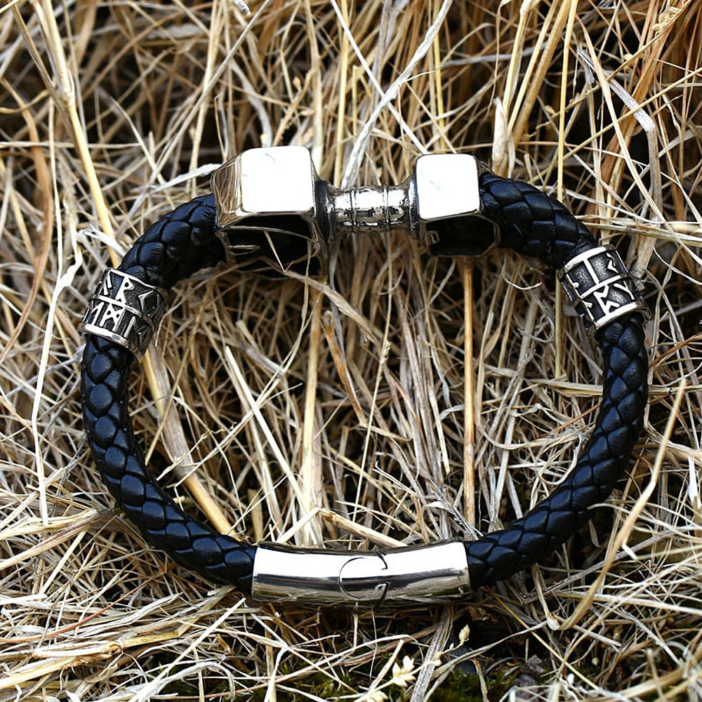 Name:Men Vintage Viking Thor's Hammer Bracelet Nordic Stainless Steel Viking Rune Bracelet Fashion Punk Leather Bracelet Jewelry