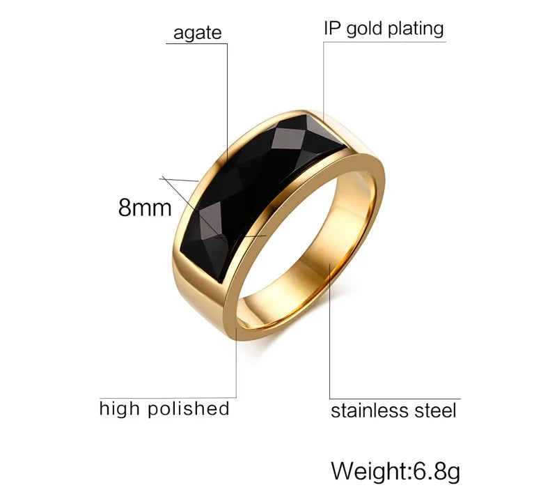 Men's Black Carnelian Stone Rings Stainless Steel Wedding Engagement Band for Men Male Jewelry Anel Aneis Masculinos