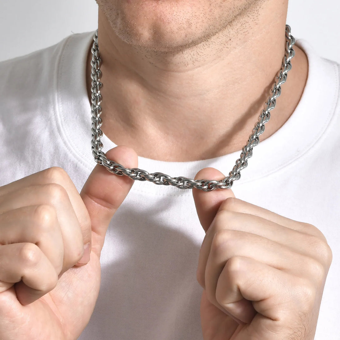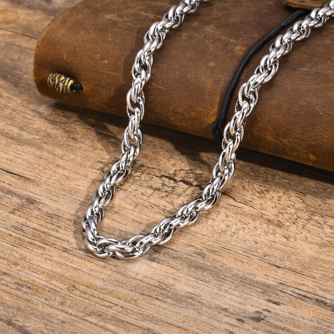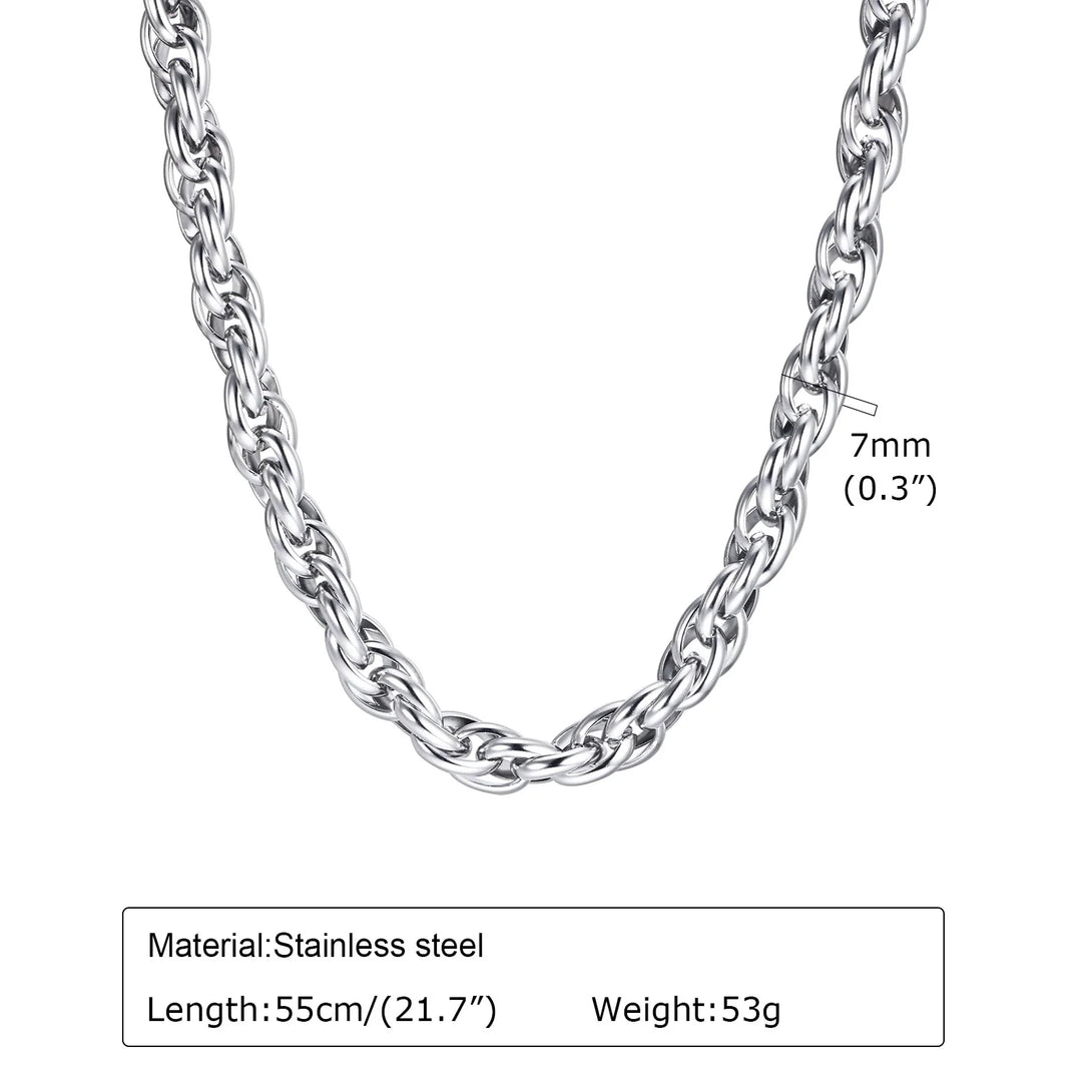 Men's Chunky Twisted Chain Necklaces,Never Fade Silver Color Stainless Steel Link Collar,Father's Day Birthday Gifts