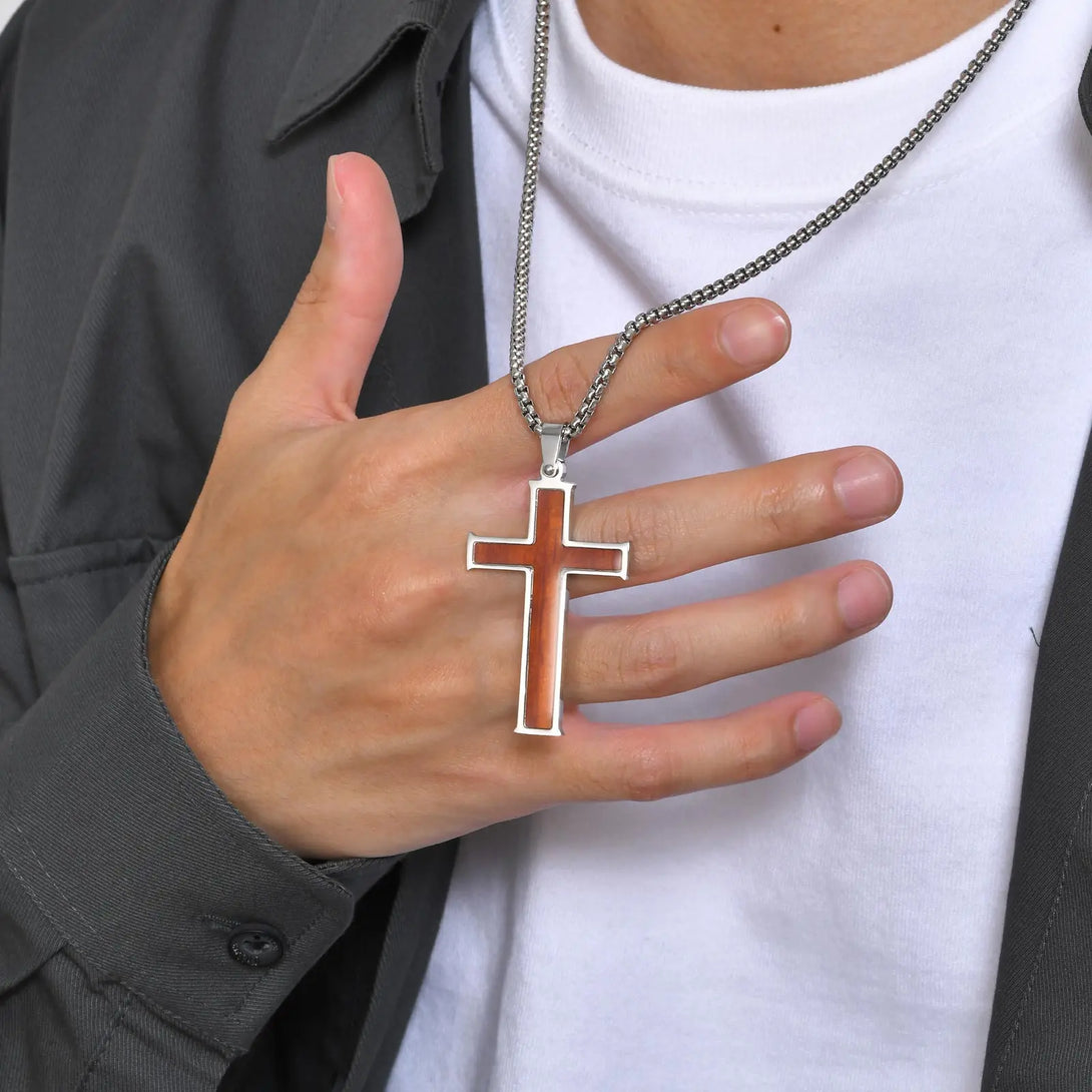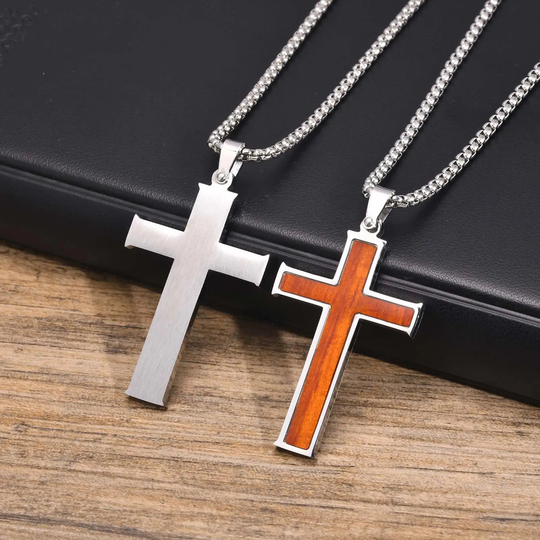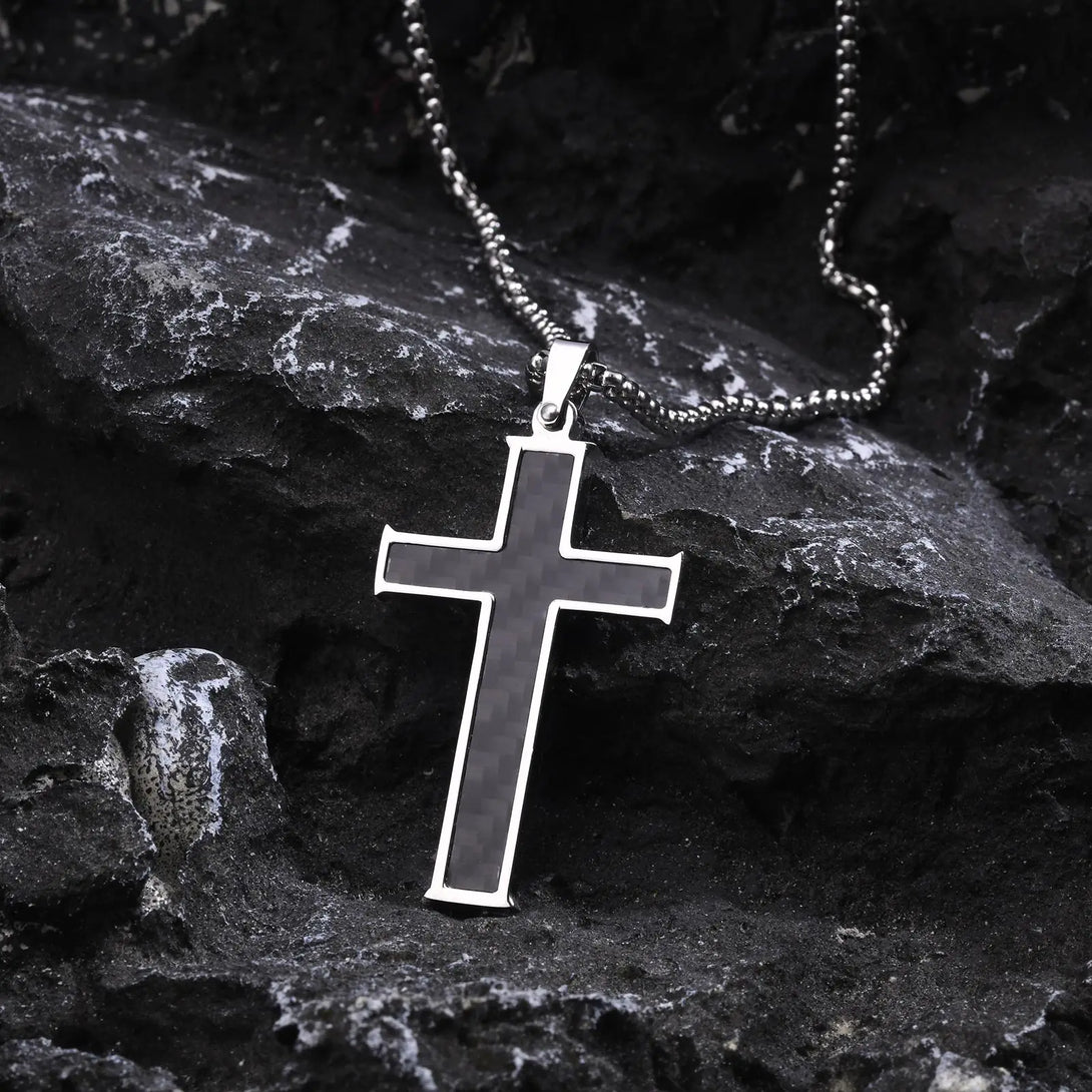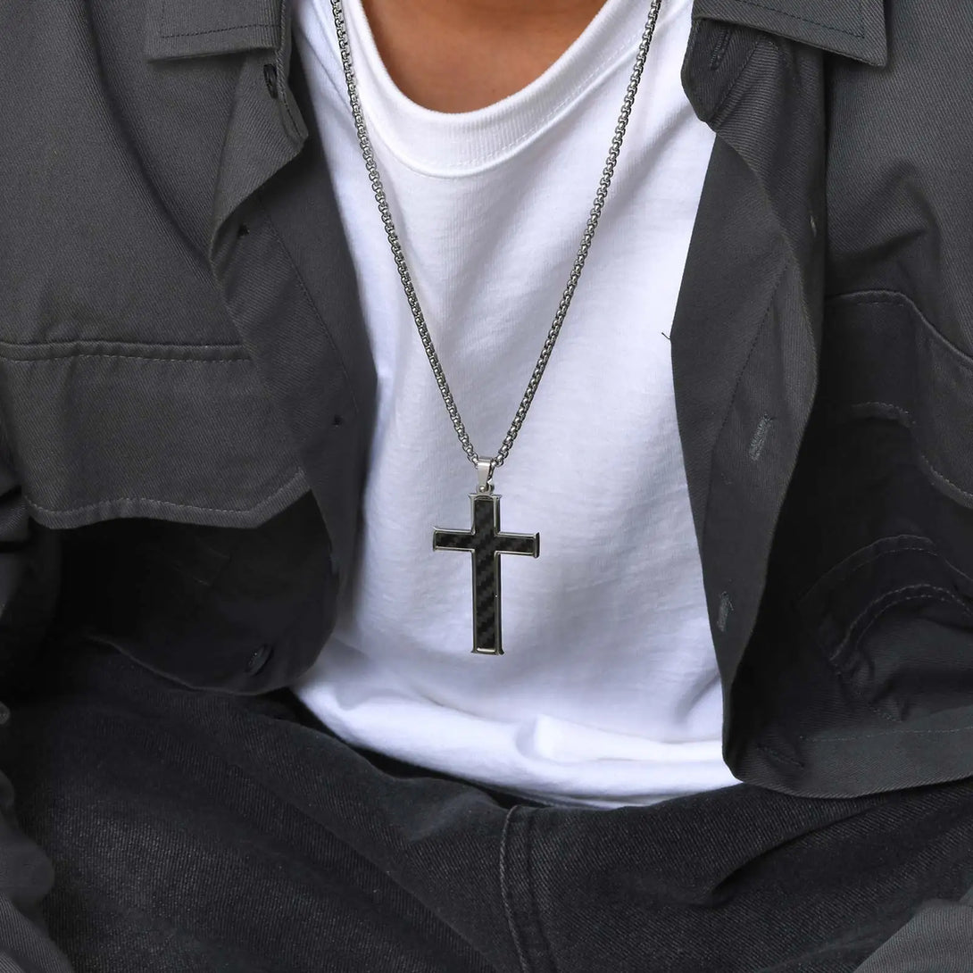 Mens Cross Necklaces,Black Color Carbon Fiber Pendant,Wood Cross Pendant,Religion Christ Faith Jewelry