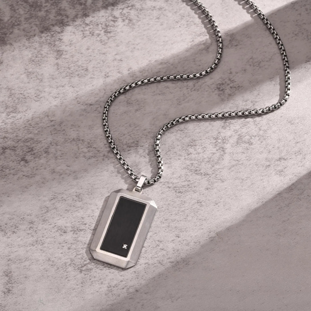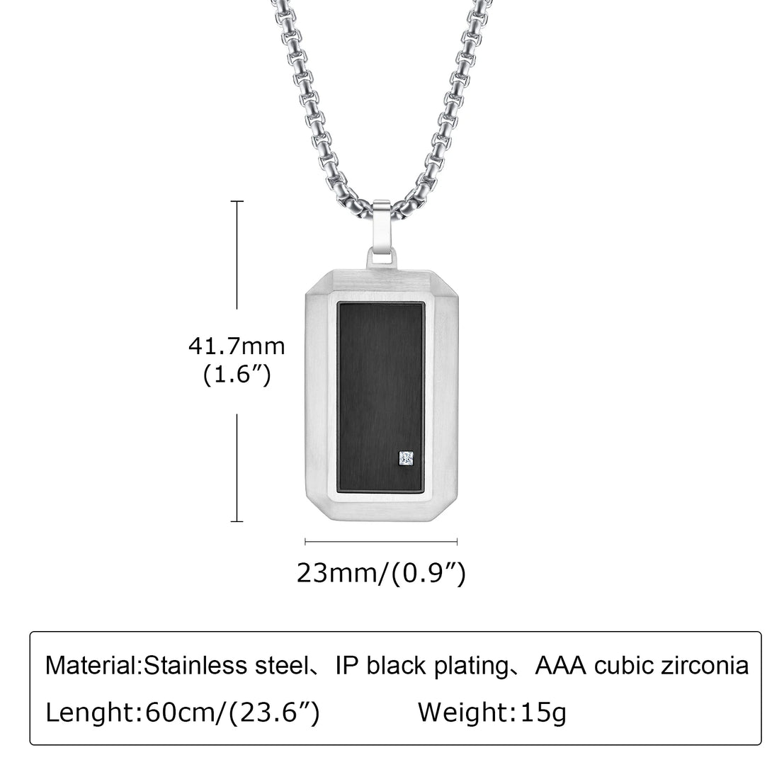 Men's Dog Tag Pendant Necklaces, Waterproof Stainless Steel Box Chain Collar with Cubic Zirconia Stone