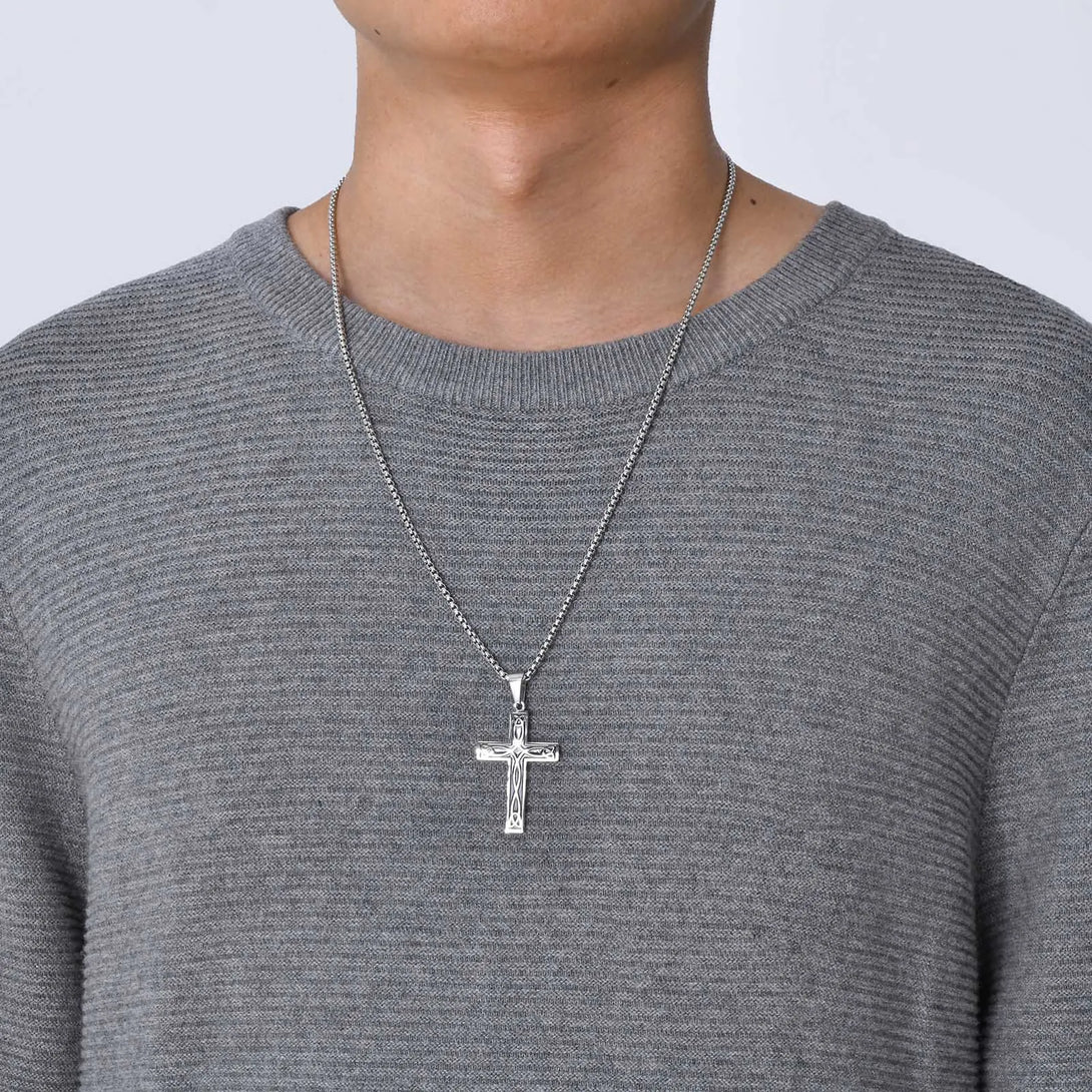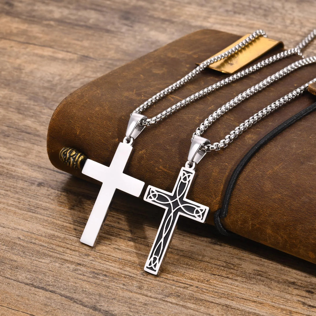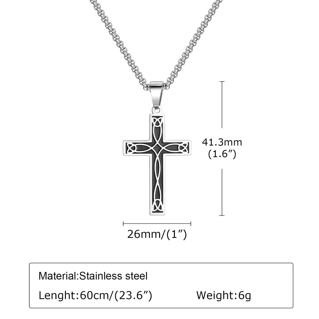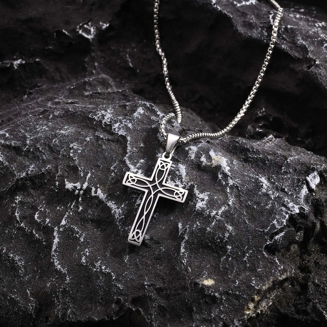 Mens Ethnic Celtic Cross Necklaces, Waterproof Stainless Steel Viking Knot Pendant with Box Chain,Prayer Faith Collar