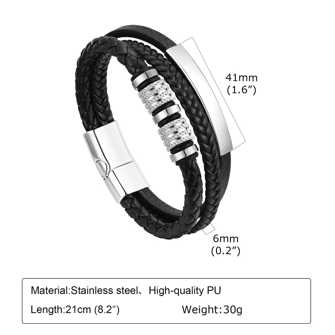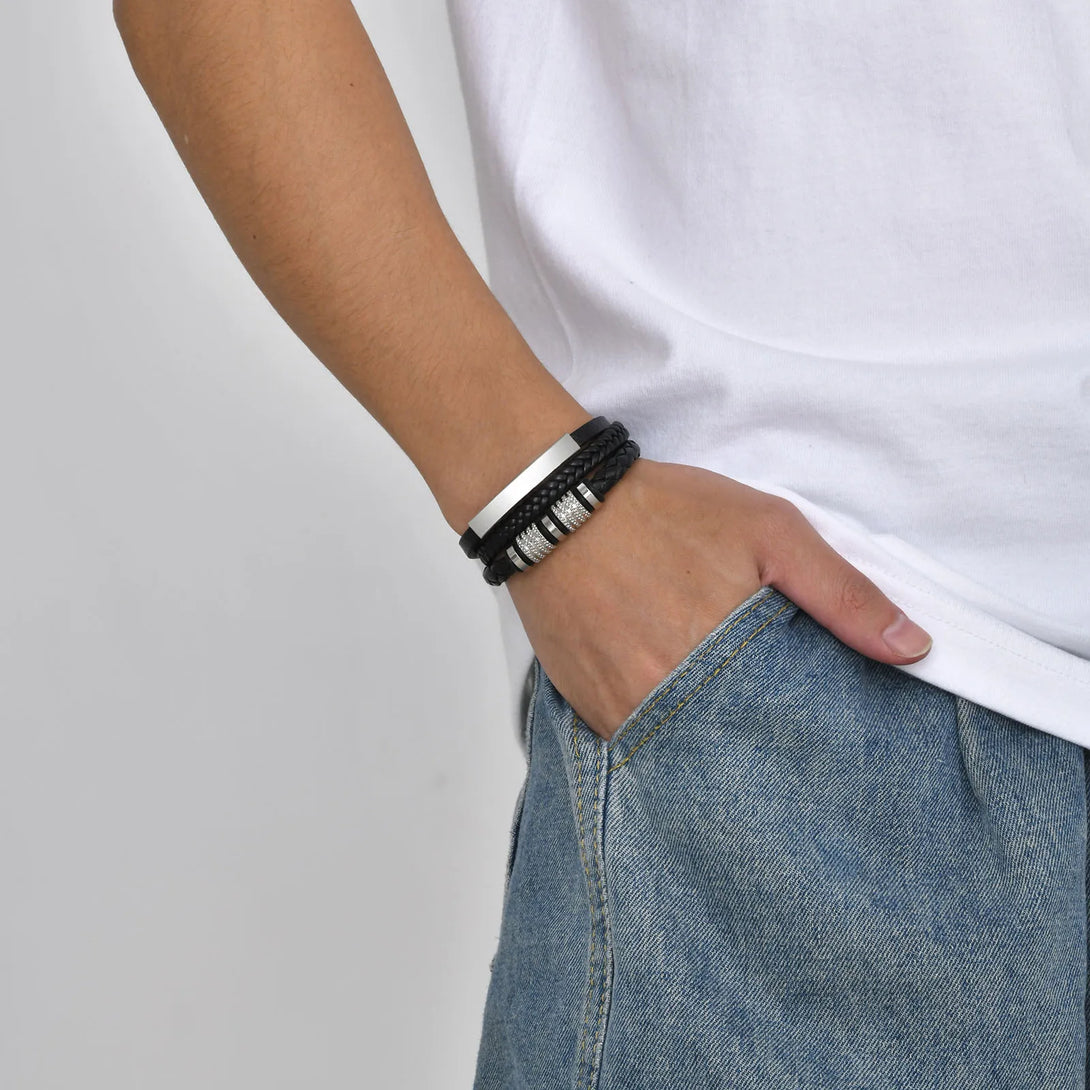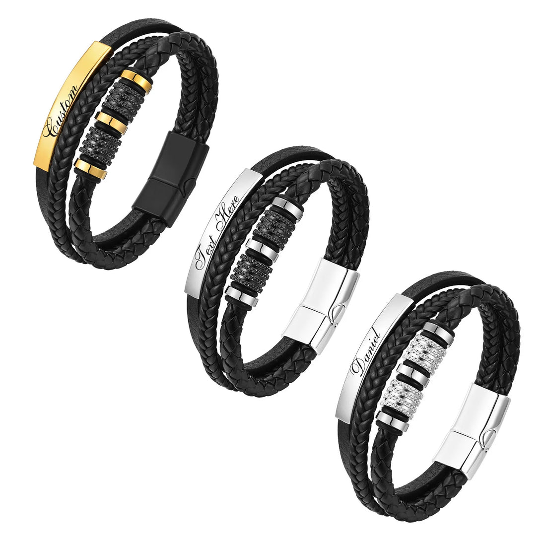 Mens Free Custom Leather Bracelets,Stylish 3 Layers Rope Chain Wristband Valentine's Father's Day Birthday Party Gift
