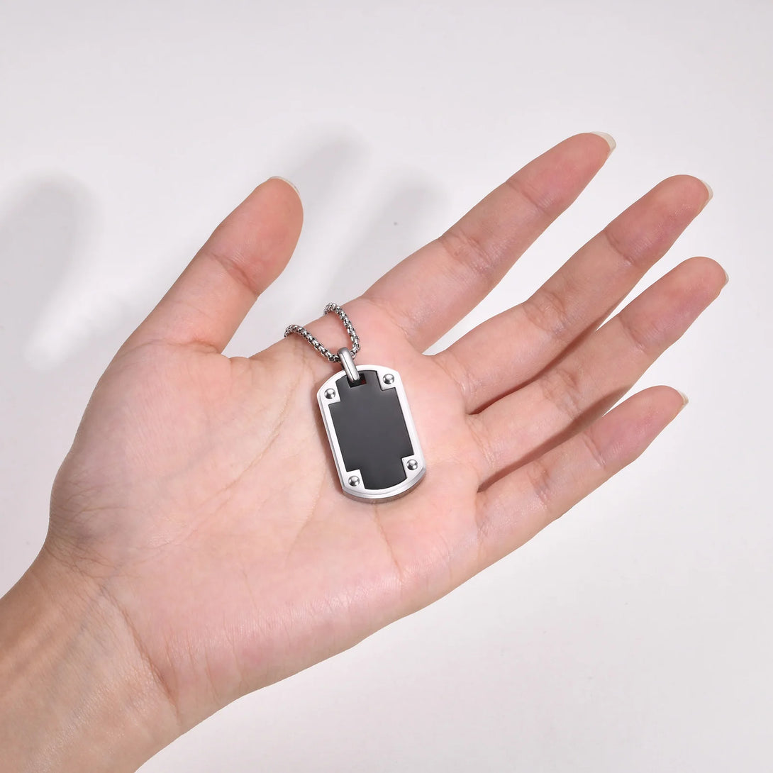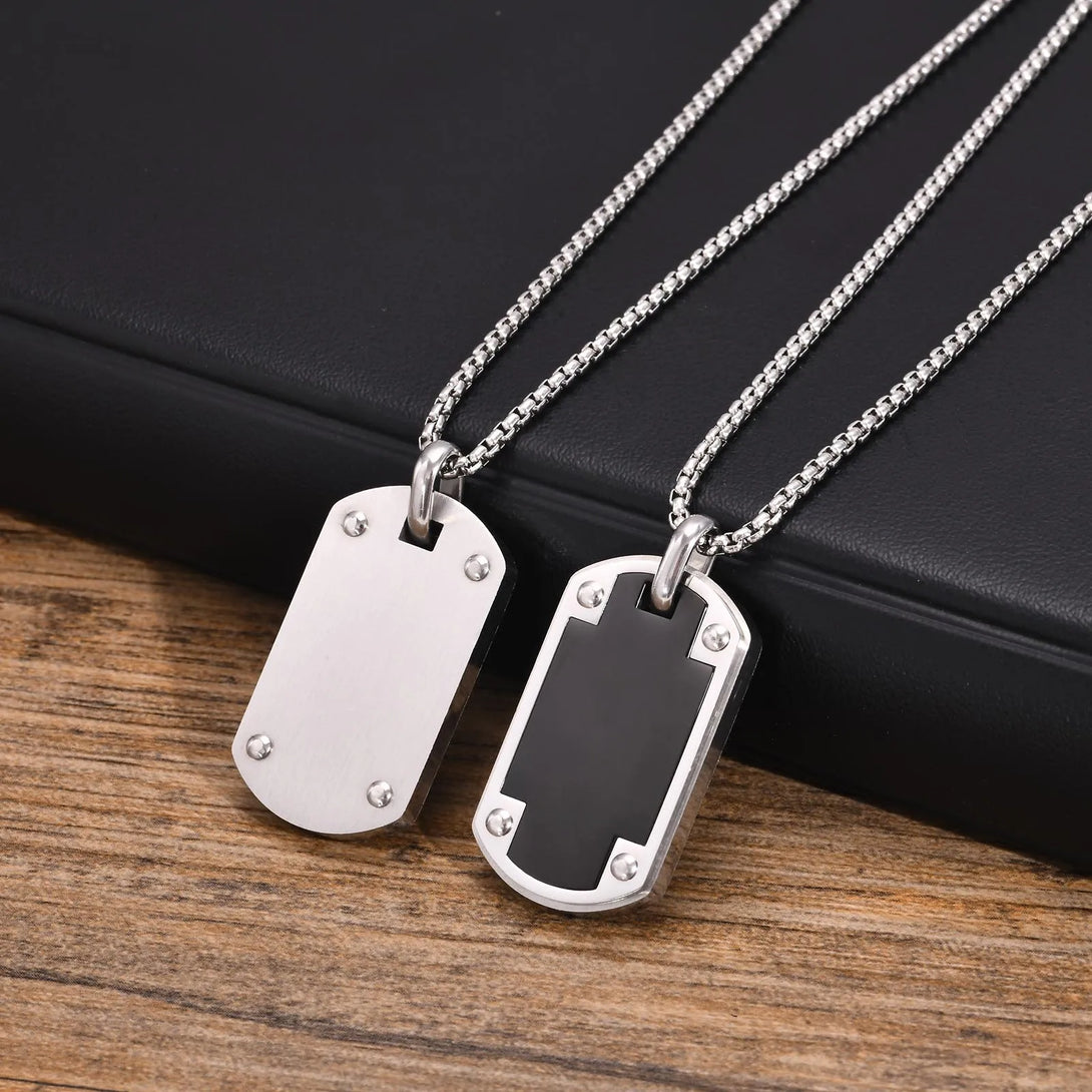 Mens Free Personalized Dog Tag Necklaces,Boys Geometric Square Pendant Collar,Custom His Father's Day Birthday Gifts