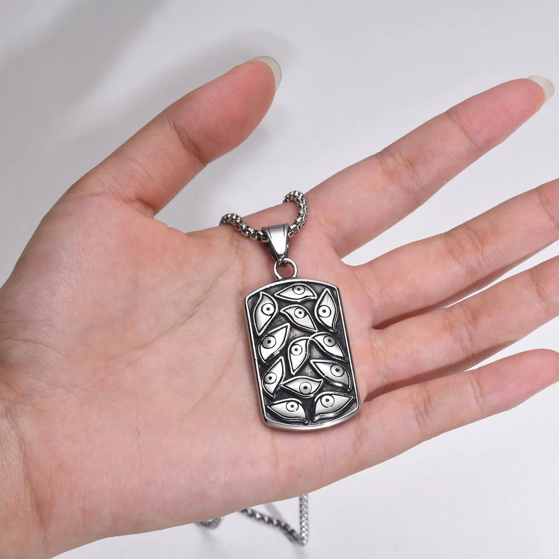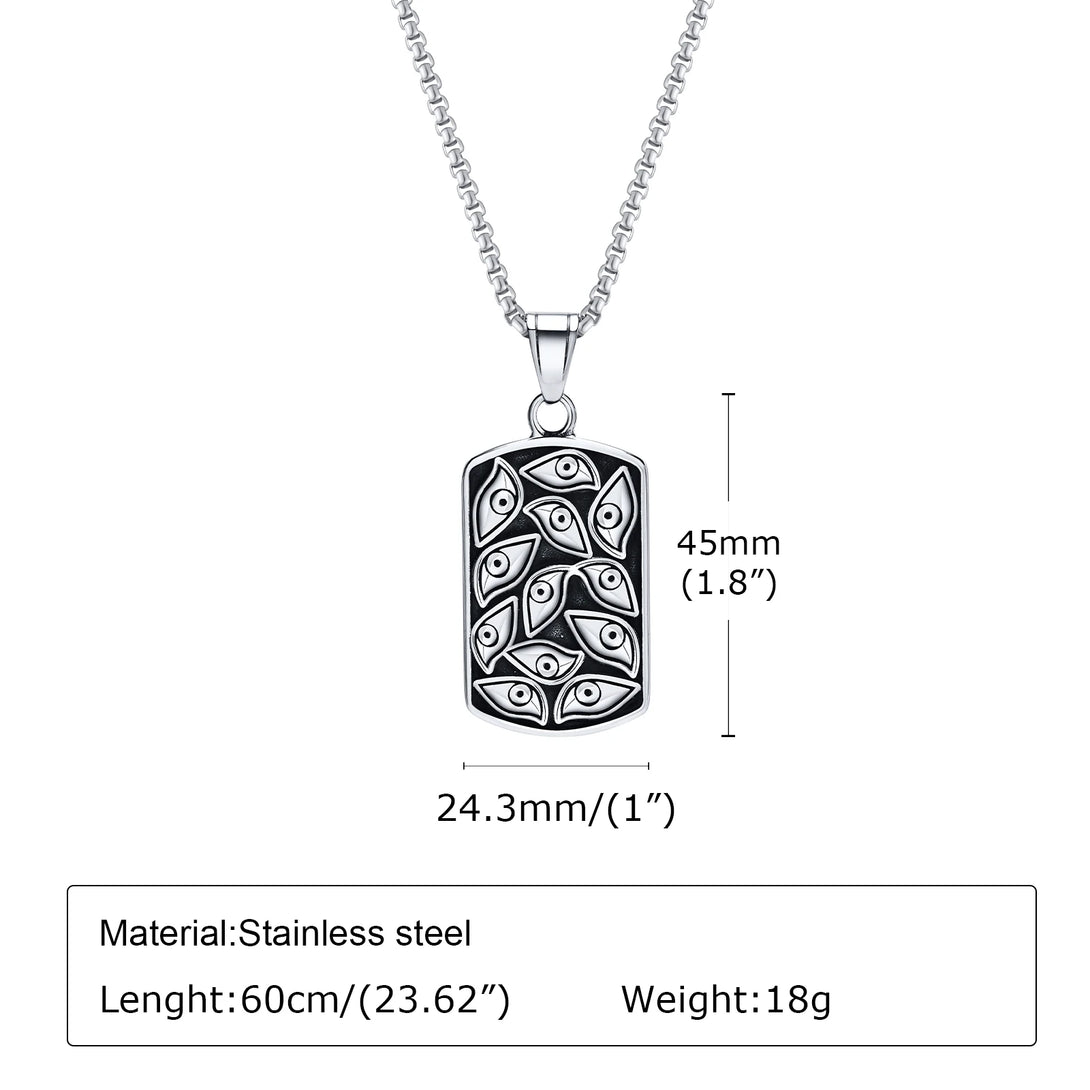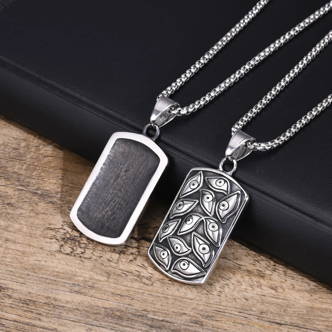 Men's Gothic Eye of the Devil Necklaces, Cool Punk Stainless Steel Square Dog Tag Pendant Collar, Gifts to Him