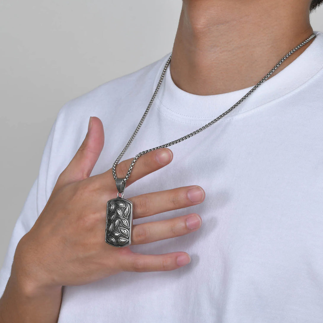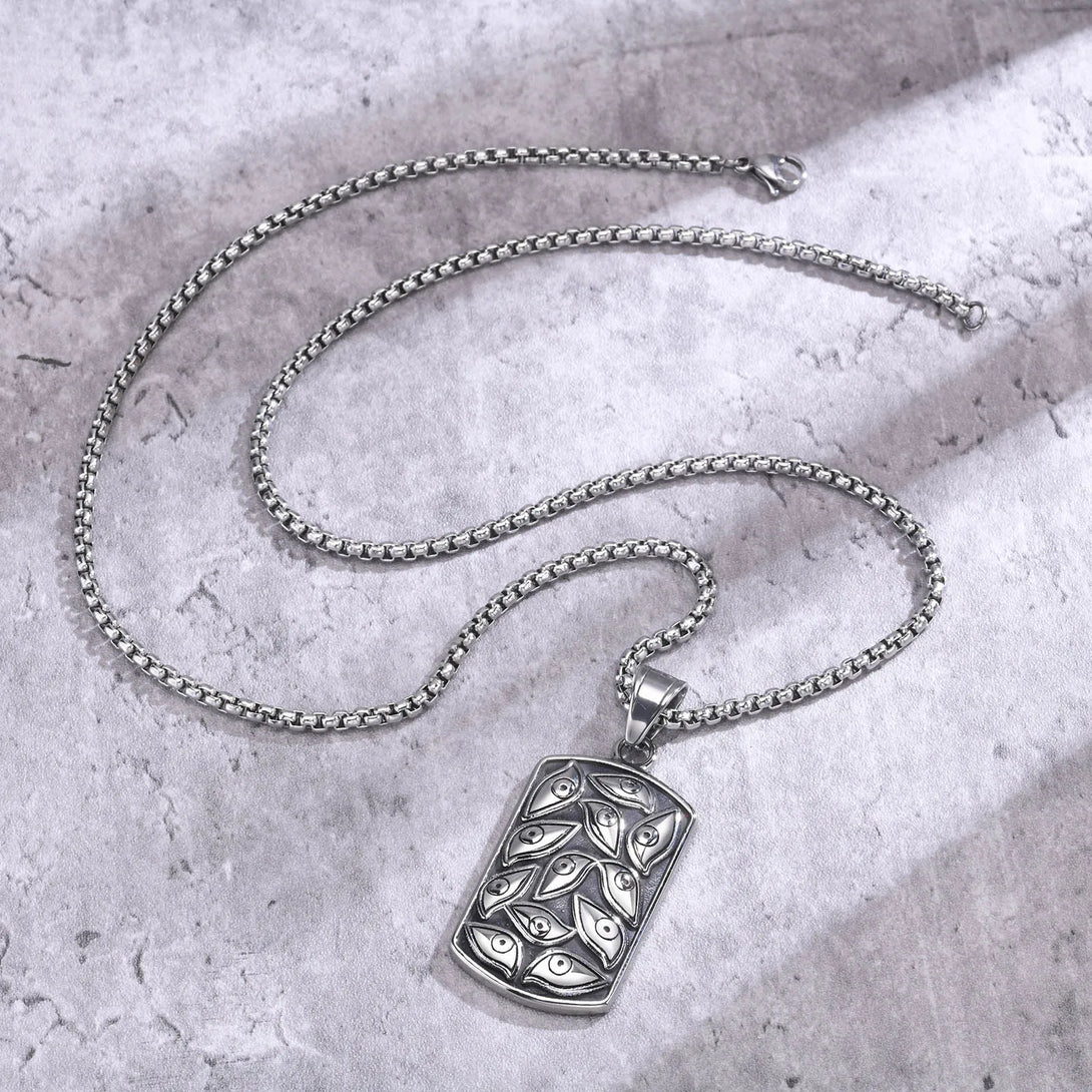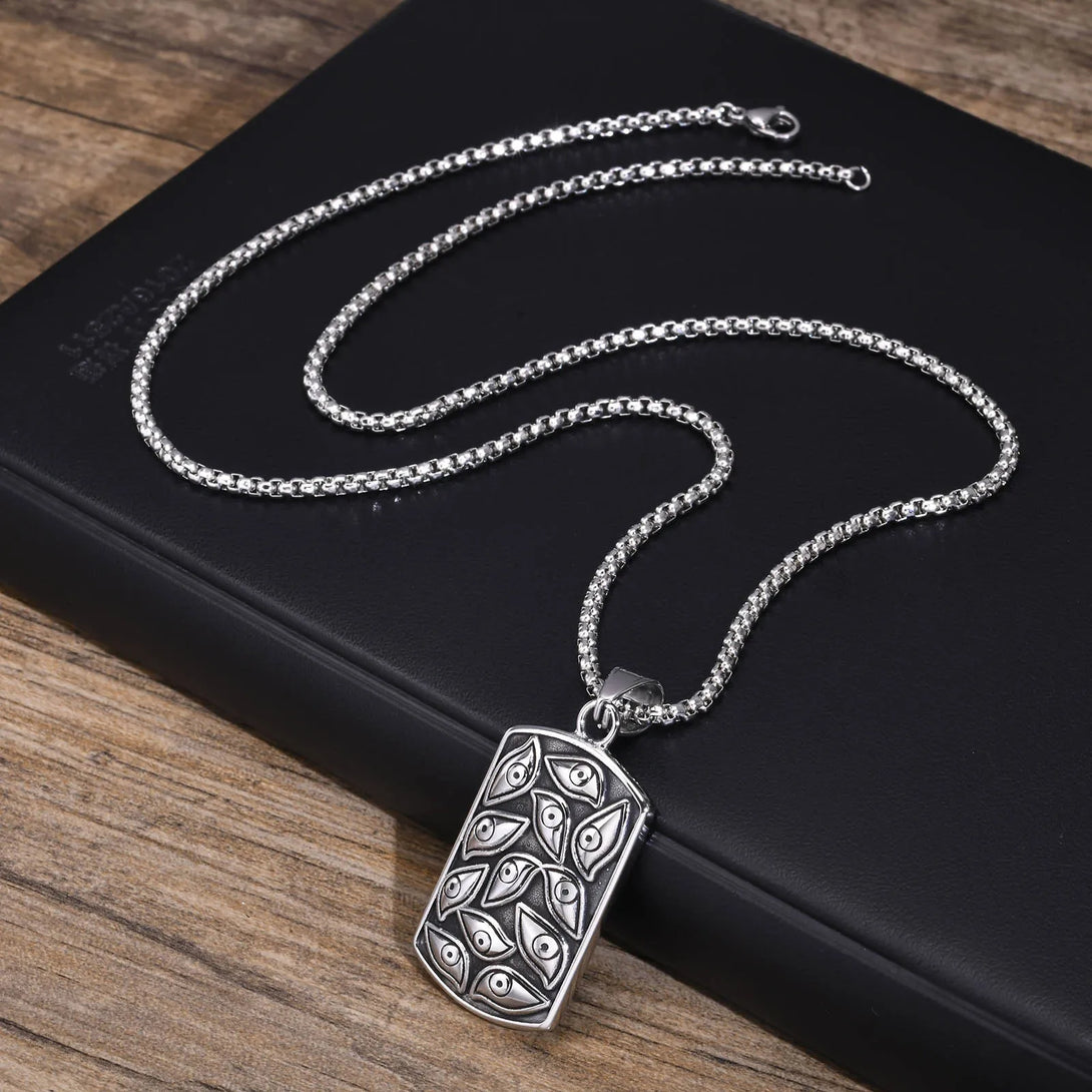 Men's Gothic Eye of the Devil Necklaces, Cool Punk Stainless Steel Square Dog Tag Pendant Collar, Gifts to Him