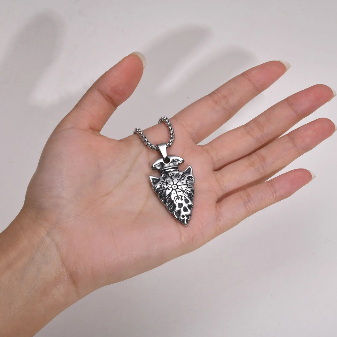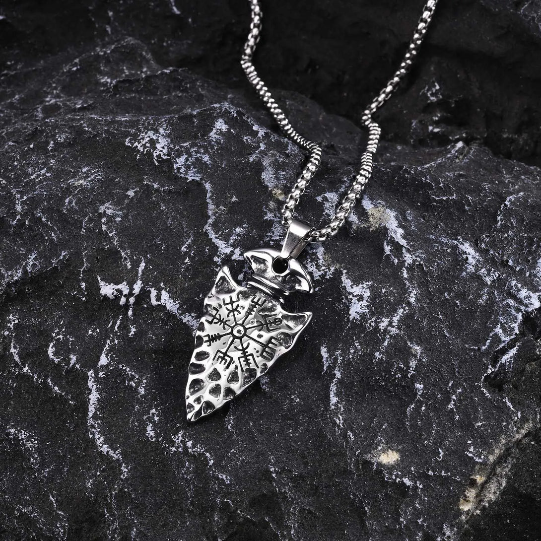 Mens Hammered Arrow Necklaces,Rock Punk Nordic North Europ Viking Compass Pendant Collar