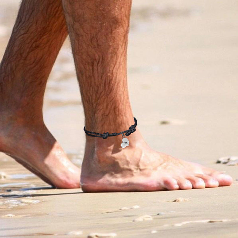 Anklets- MENS HEART CHARM ANKLET FOR MANS ADJUSTABLE BEACH BOHO ANKLETS MEN JEWELRY MALE ACCESSORIES ENGRAVABLE