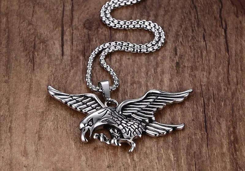 Mens Necklaces Eagle Pendant Stainless Steel Male Hip Hop Biker Animal Jewelry