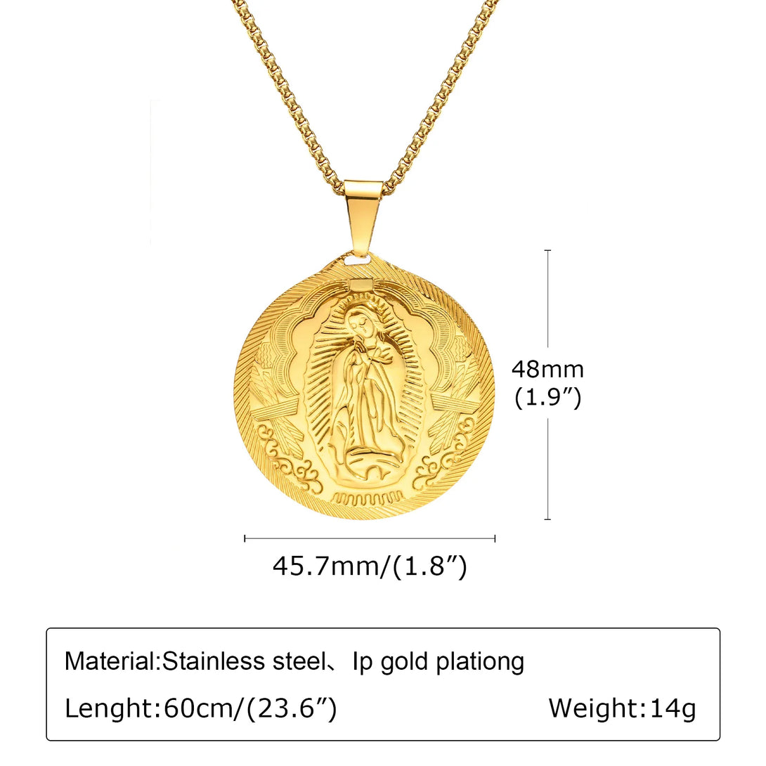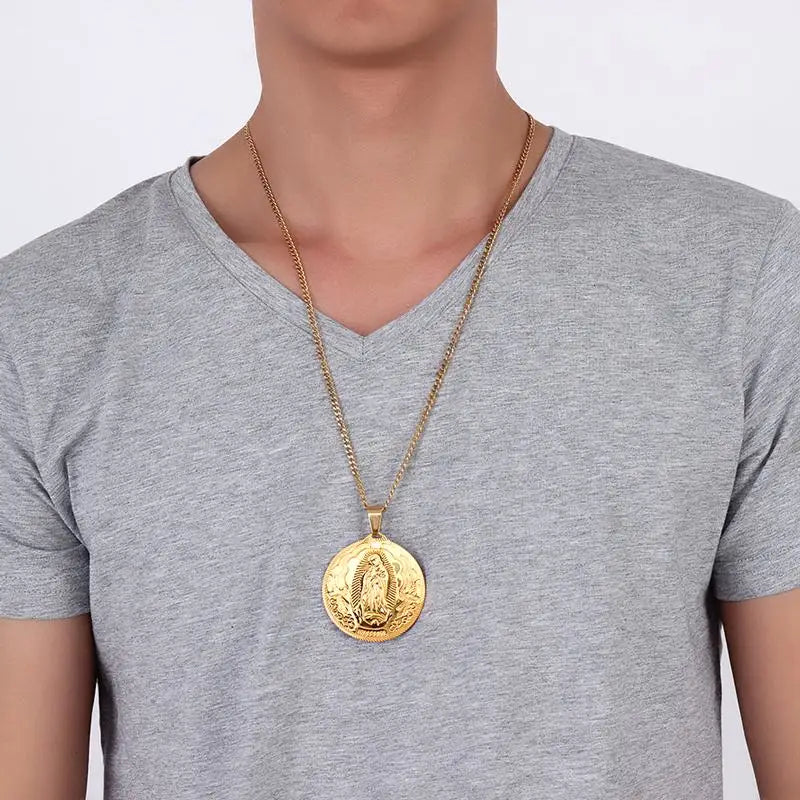 Mens Necklaces Virgin Mary Maria Miraculous Medal Gold color Stainless Steel Jewelry
