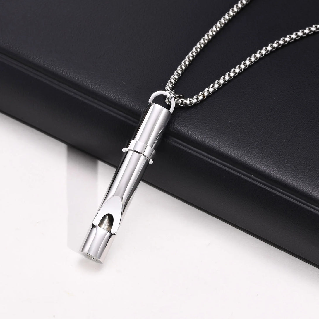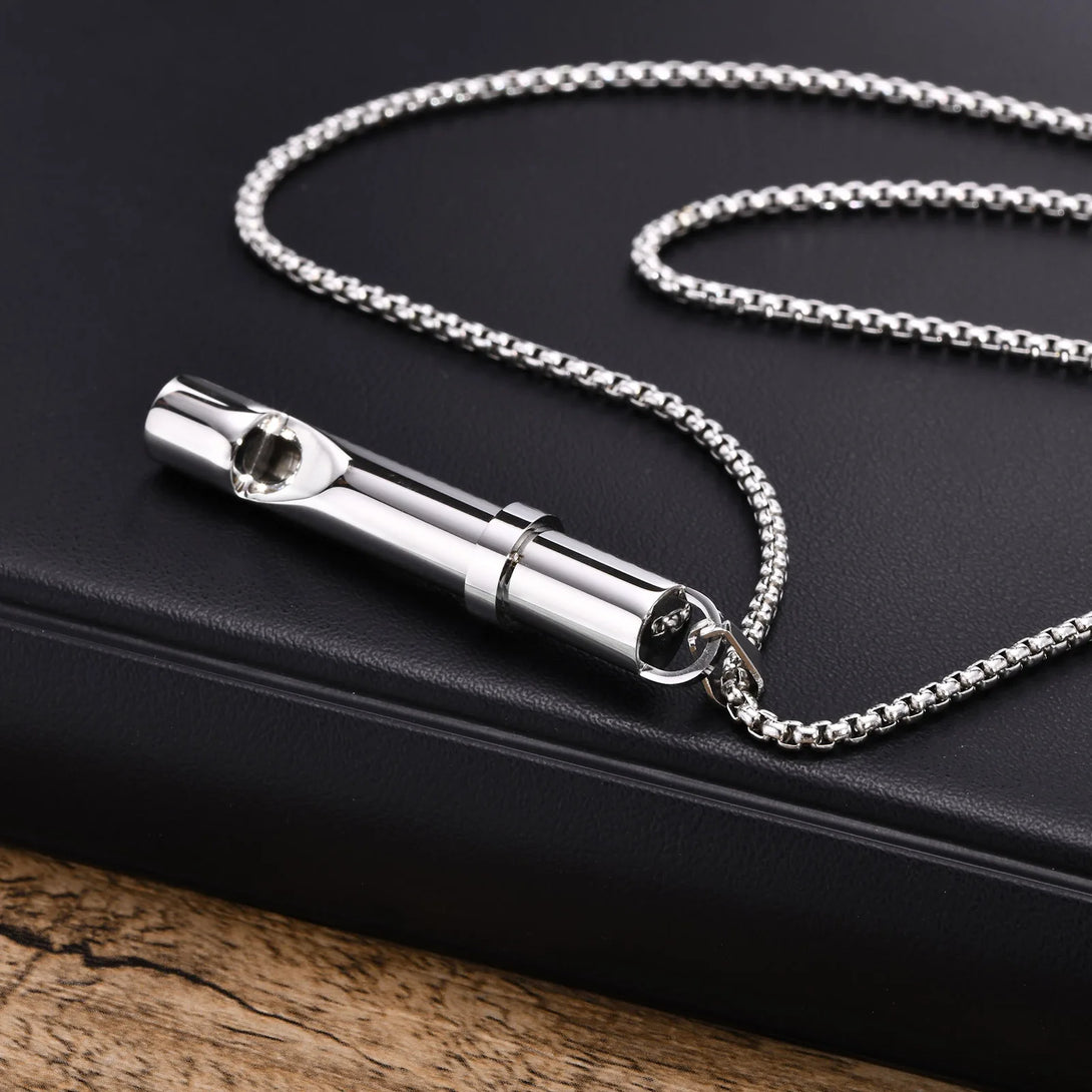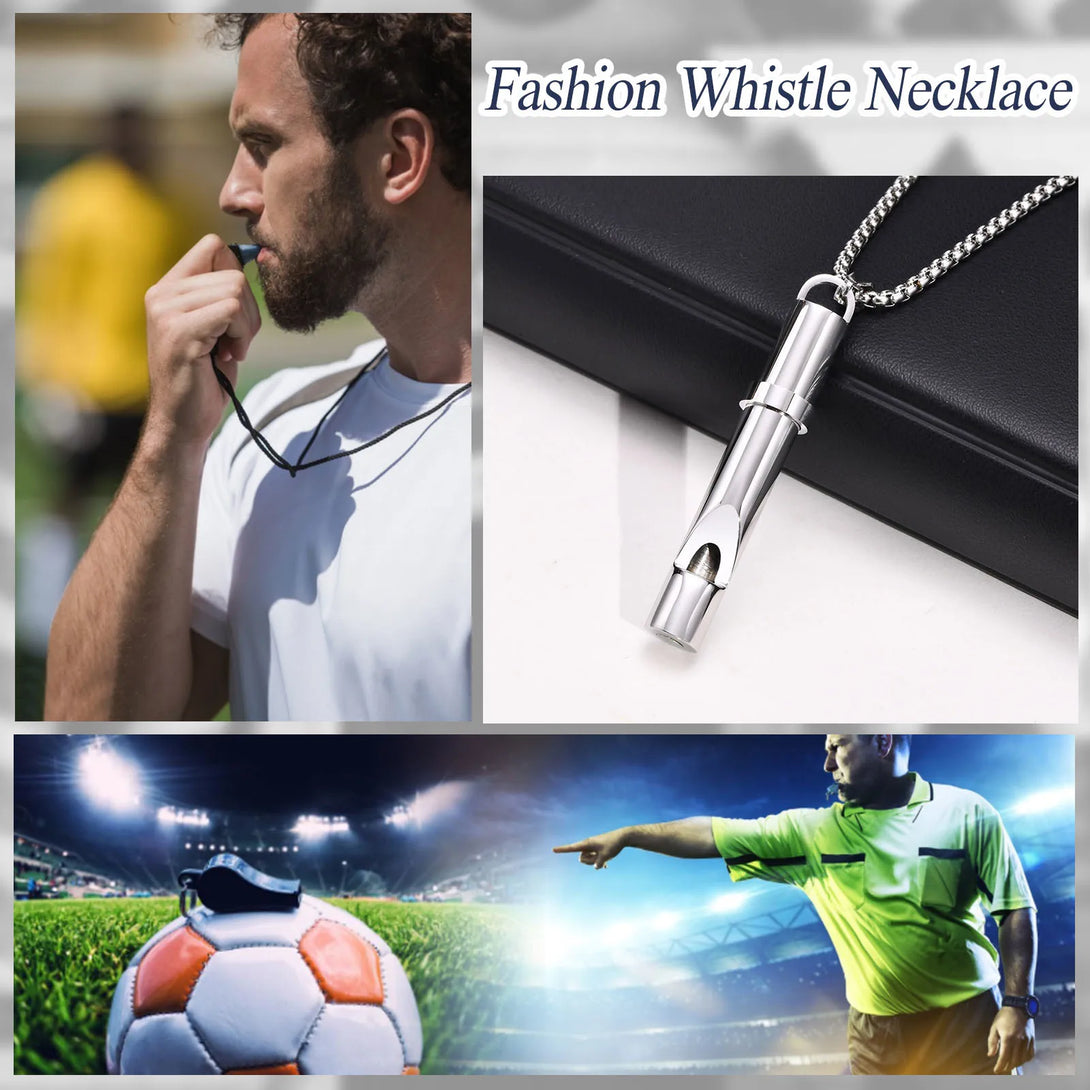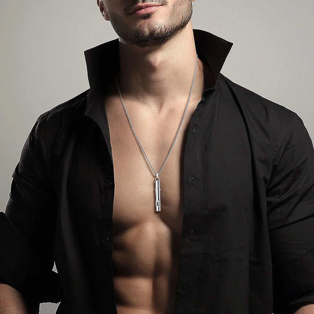 Men's Outdoor Emergency Whistle Necklaces,Stainless Steel Survival Signal Whistles with Lanyard for Camping Hiking Sports Collar