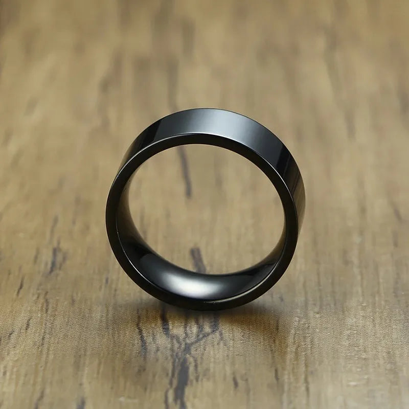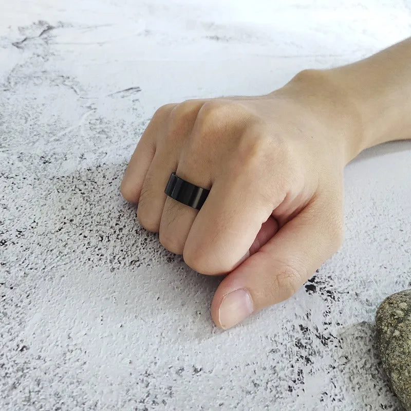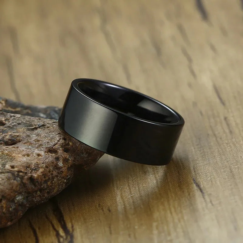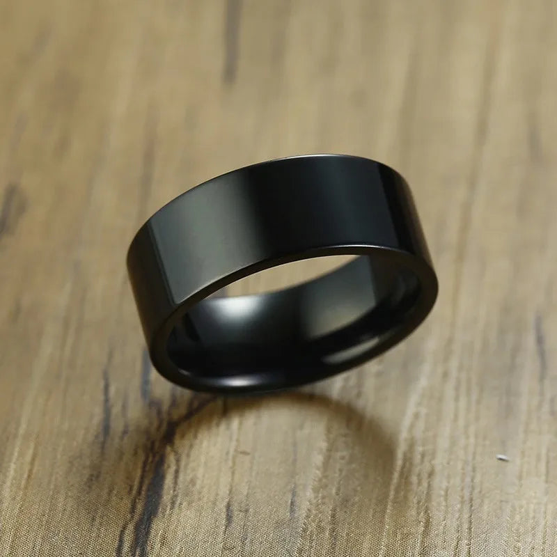Mens Ring 8mm Flat Pipe Cut Matte Finished Black Stainless Steel Wedding Engagement Band for Men Jewelry