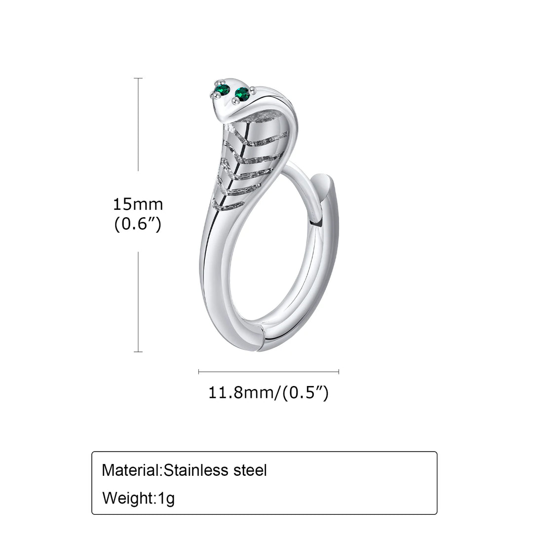 Men's Snake Hoop Earrings with Green CZ Stone, Anti Allergy Stainless Steel Huggie Earrings Birthday Party Gift Jewelry