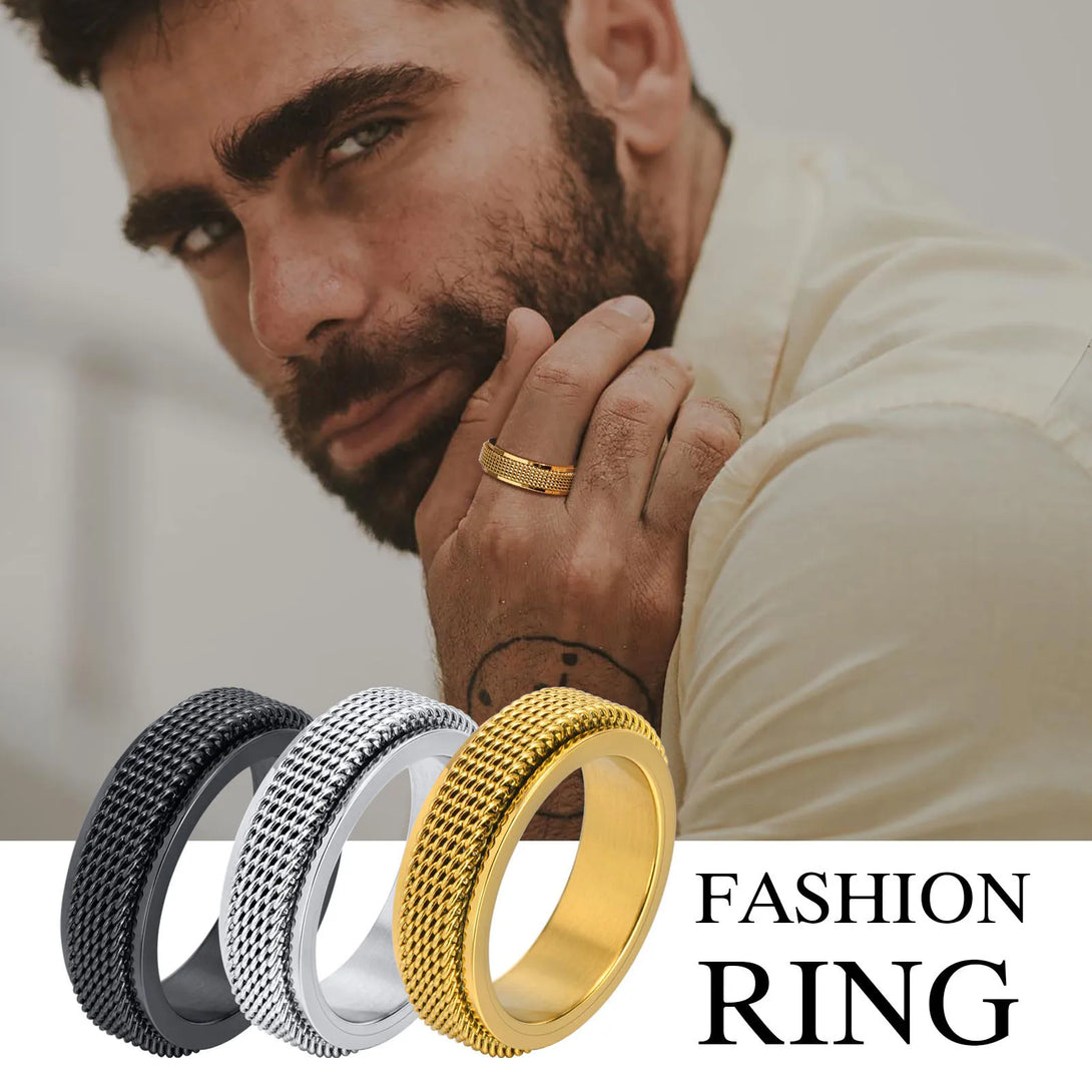 Men's Spinner Fidget Rings for Anxiety, Waterproof Stainless Steel Mesh Wedding Band Rings,Stress Relieveing Gifts Jewelry