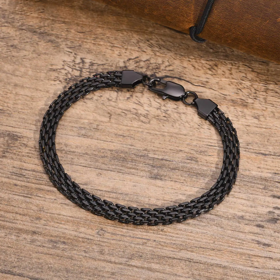 Mesh Chain Bracelets for Men Boys,Black Color Stainless Steel Links Wristband,Valentines Gift For Men, Male Jewelry