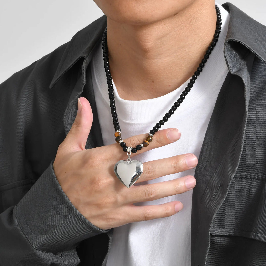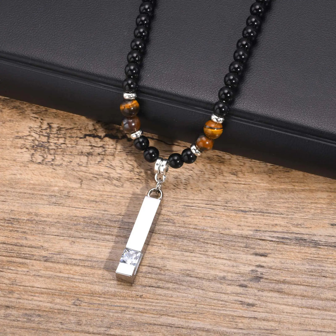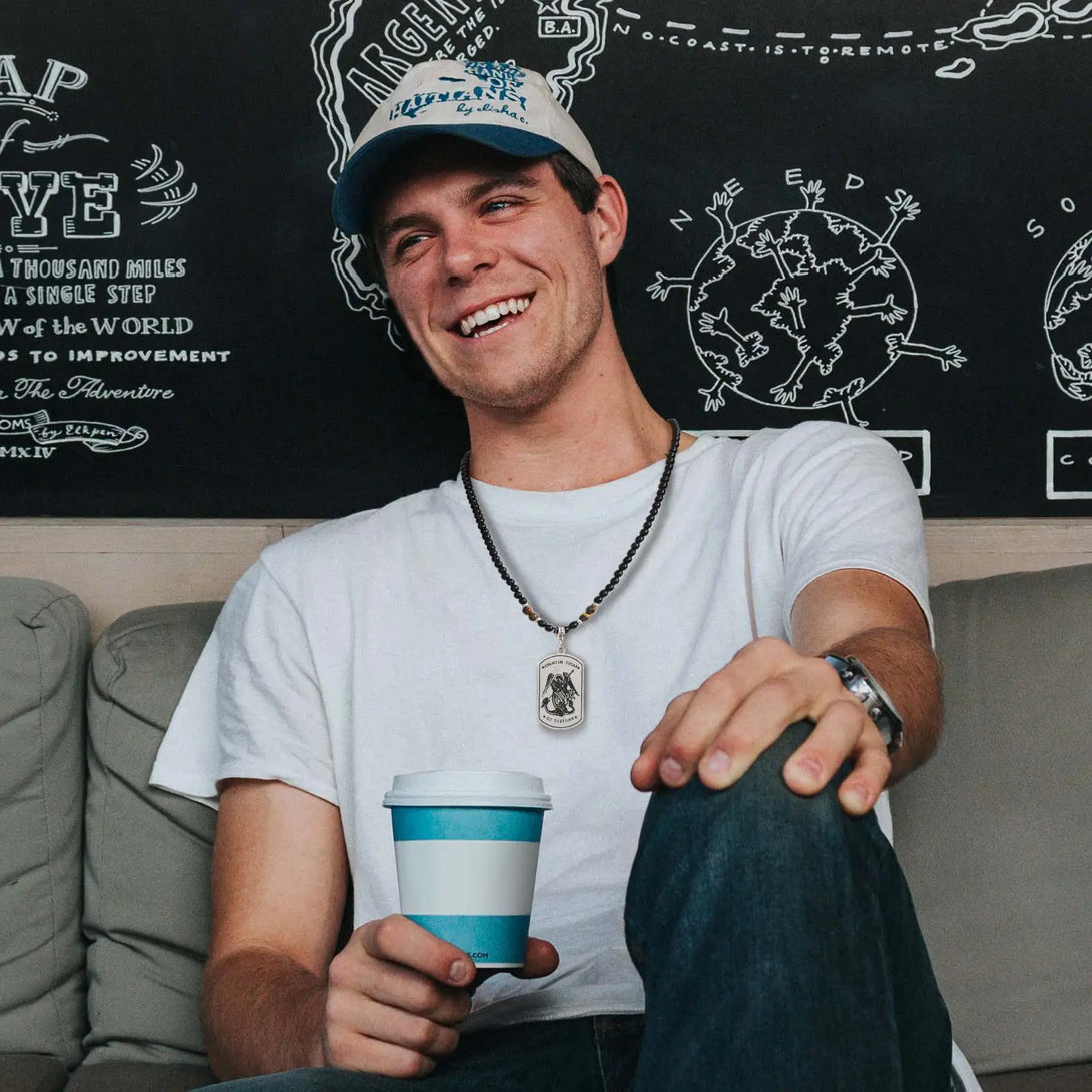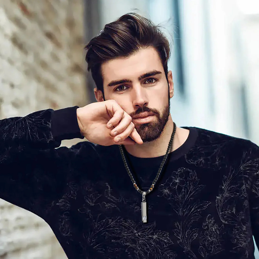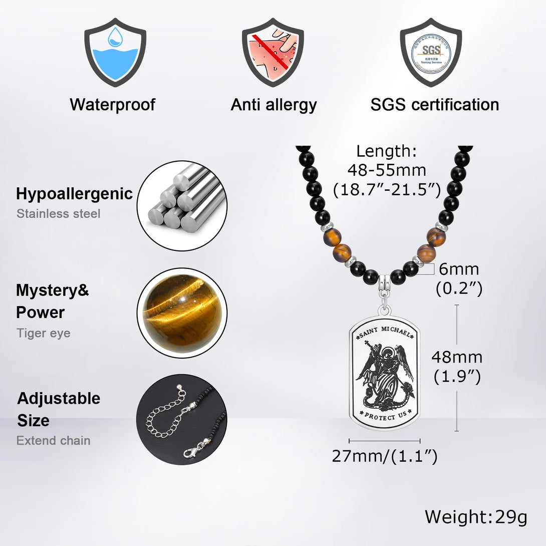 Michael Dogtag Pendant Necklaces for Men Boys,Punk Black Natural Stones Beaded Necklaces,Waterproof Jewelry