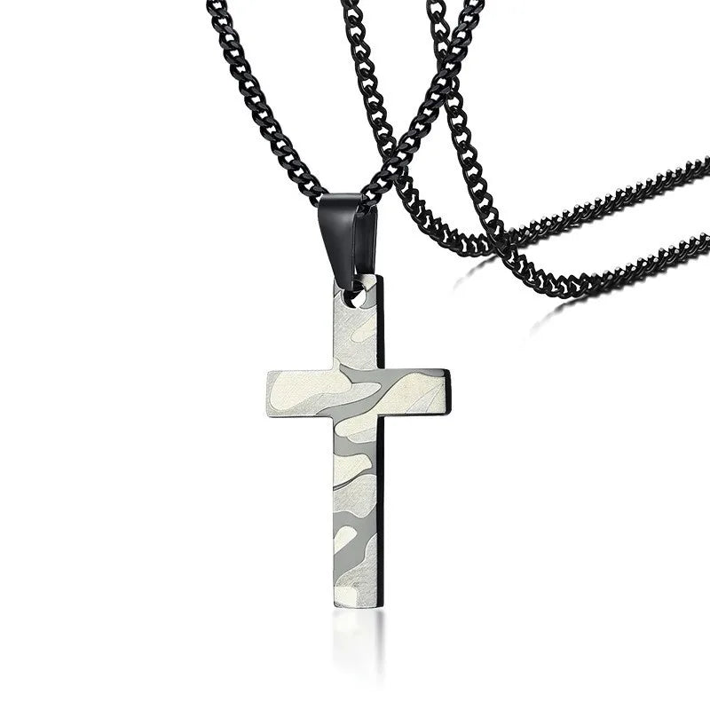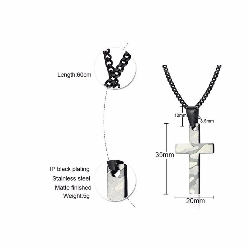 Military Necklace,Soldier Army Camouflage Print Cross Pendant Necklace for Men Stainless Steel Camo Male Jewelry with 24 inches