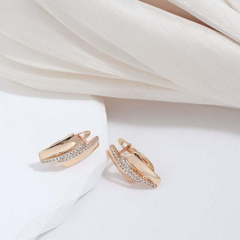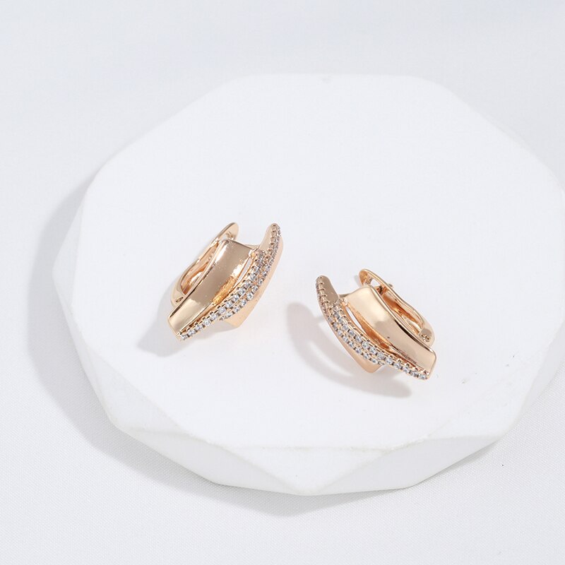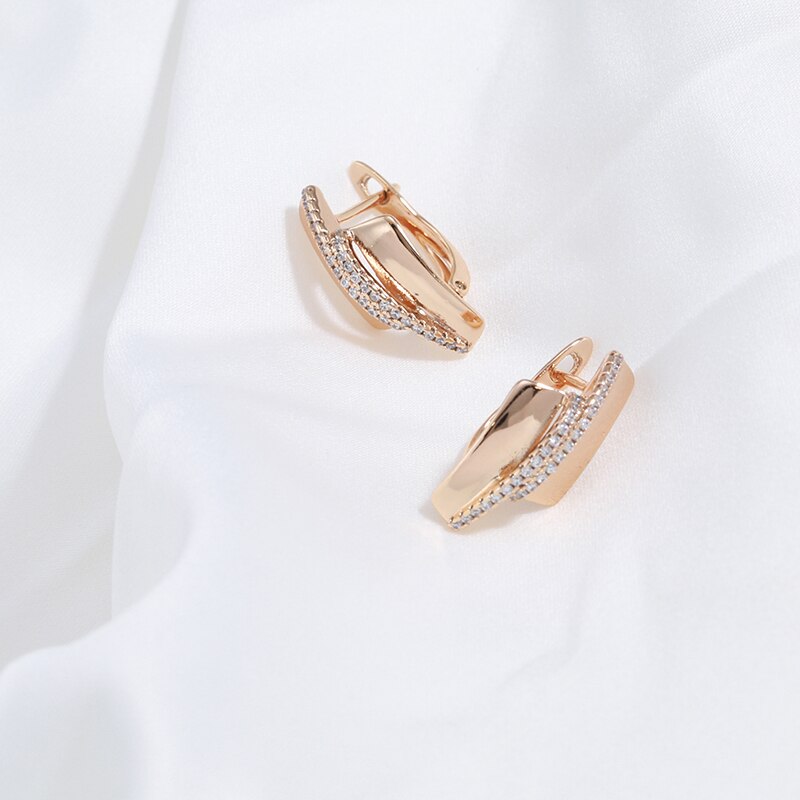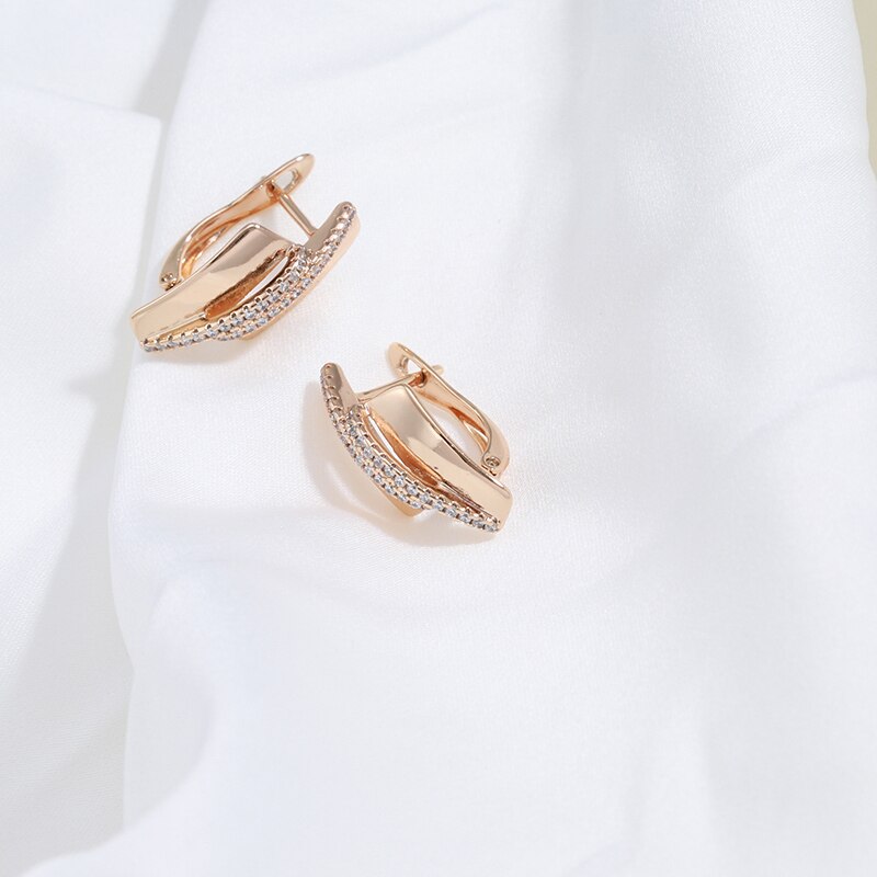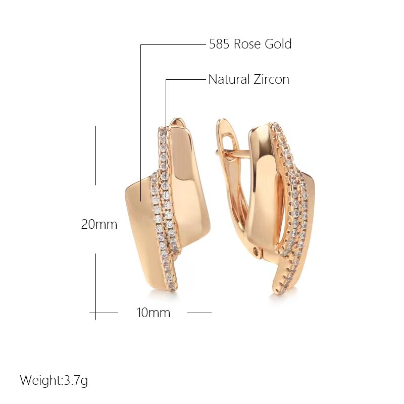 585 Gold Jewelry-Minimalist Design Smooth Metal Double Zircon Earrings For Women 585 Rose Gold Color Gothic Jewelry Daily Wear Earrings Gift
