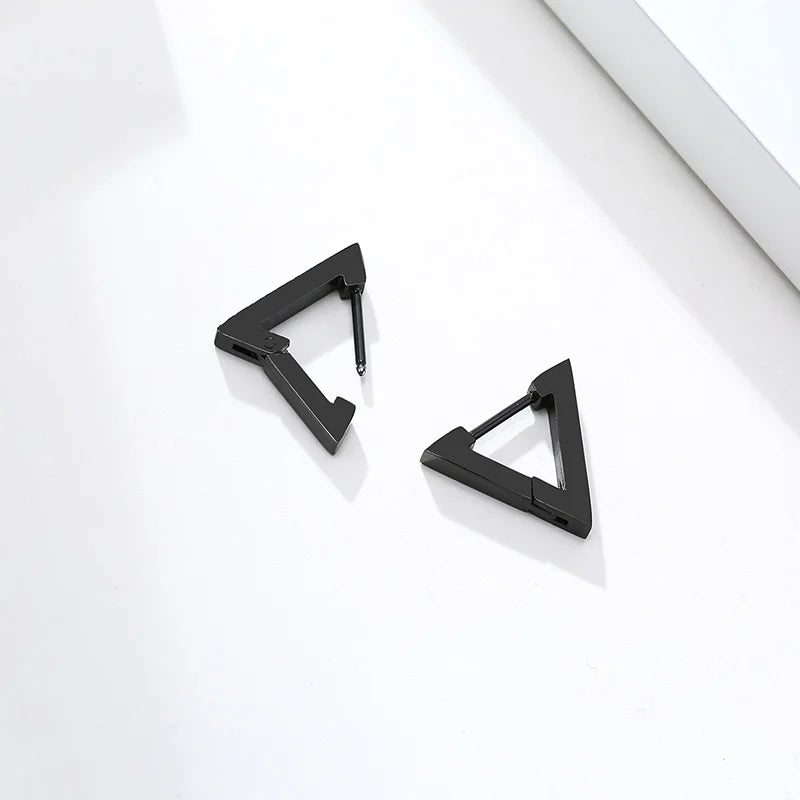 Modern Unique Guys Geometry Triangle Shaped Hoop Huggie Piercing Stud Earrings for Men Women