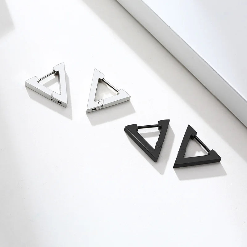 Modern Unique Guys Geometry Triangle Shaped Hooped Huggie Piercing Stud Earrings for Men Women Stainless Steel Elegant Accessory