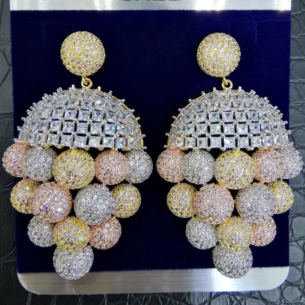 Morocco Dubai Europe Design Luxury Earrings Female Cubic Zirconia Shiny Charm Earrings For Women