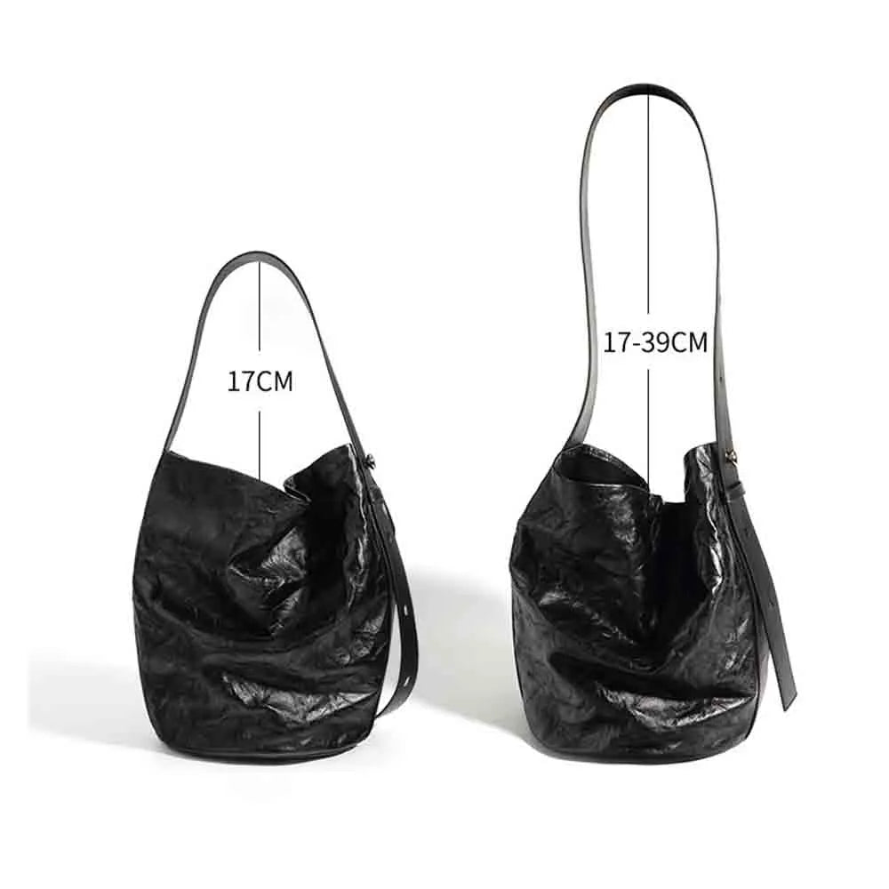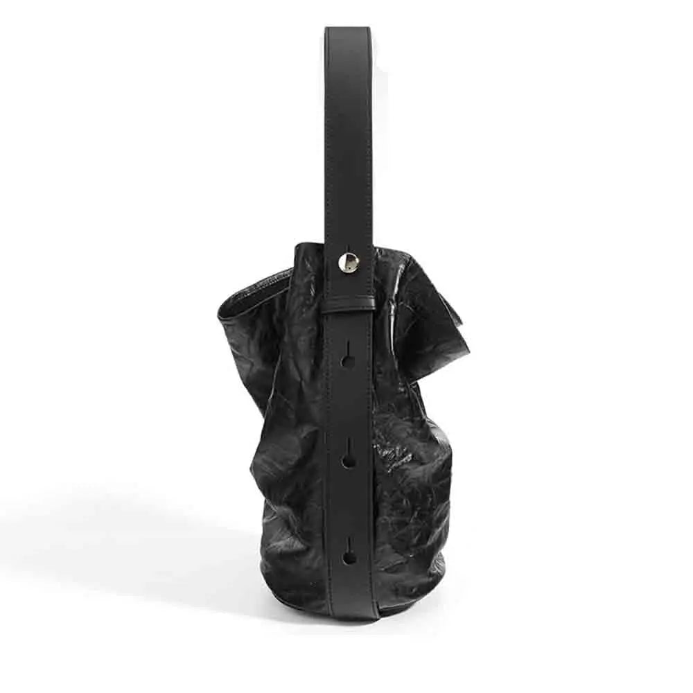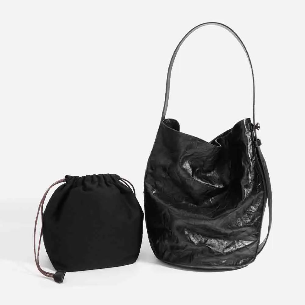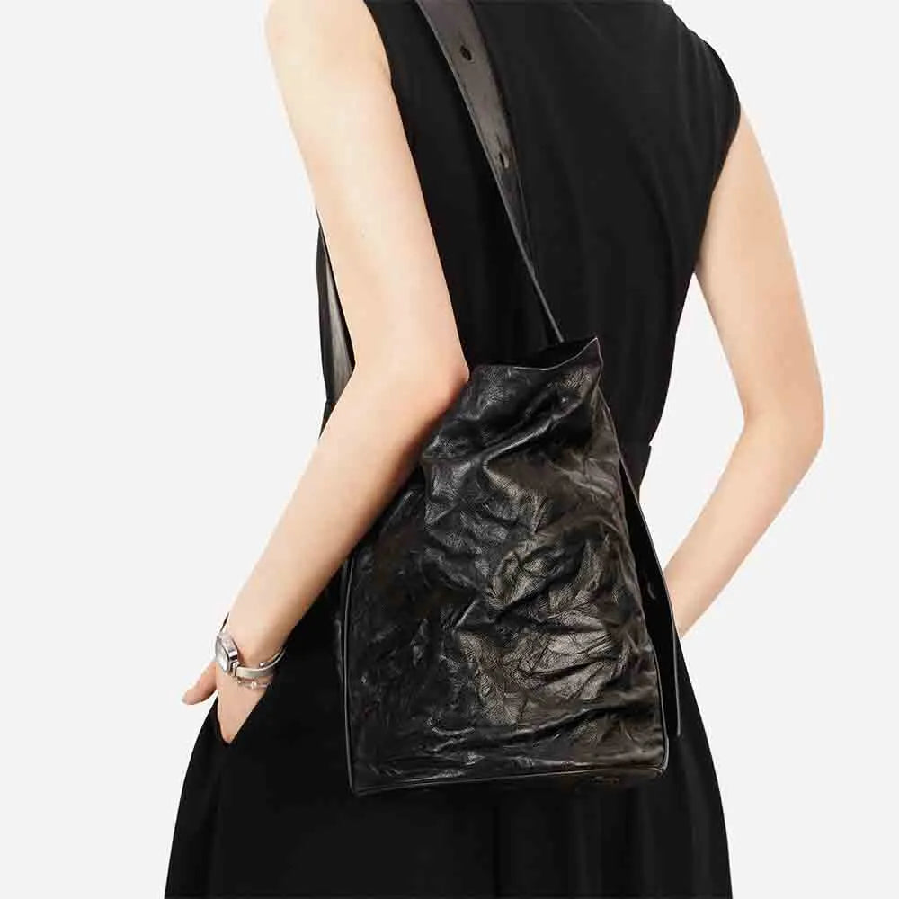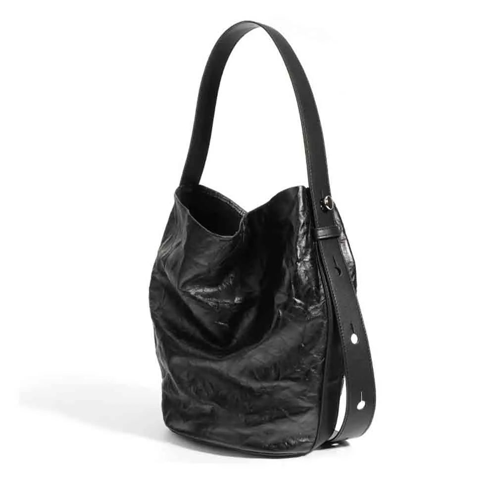 MS Retro Crease Style Woman Leather Bag Luxury Cow Leather Bucket Bags Vintage Lady Shoulder Soft Handbag Summer New