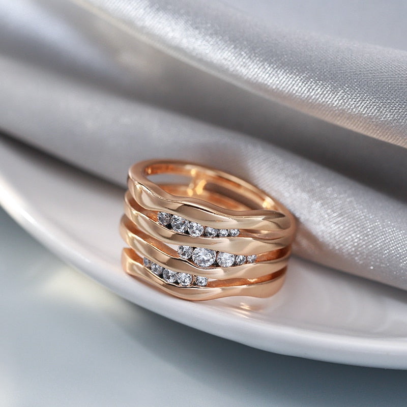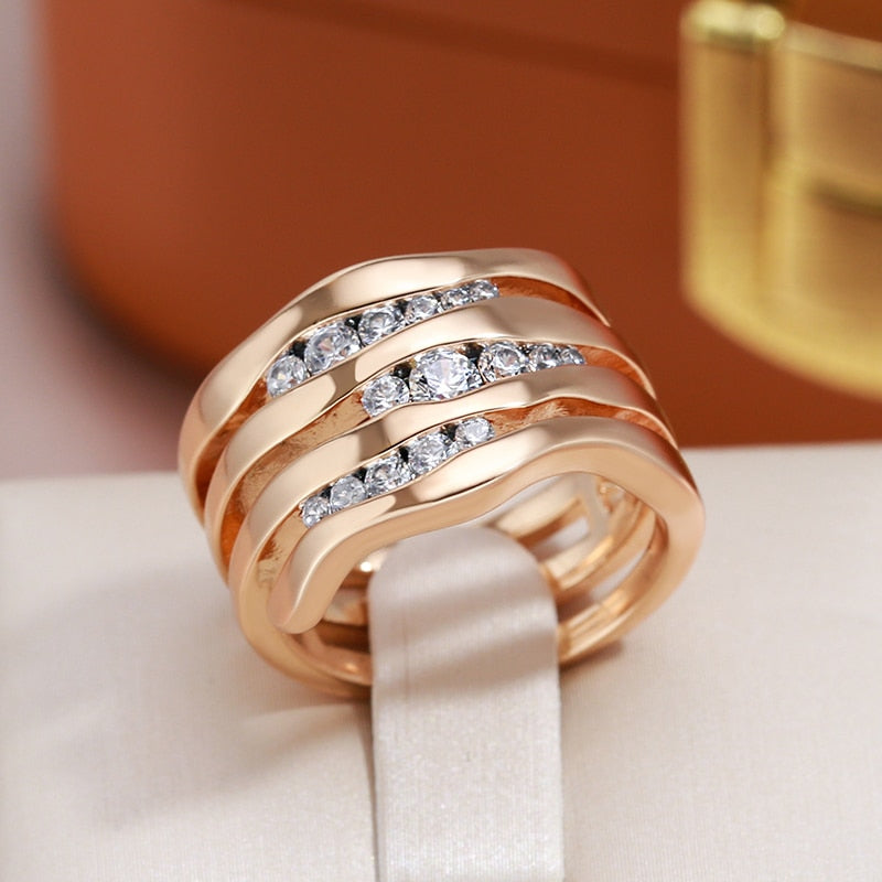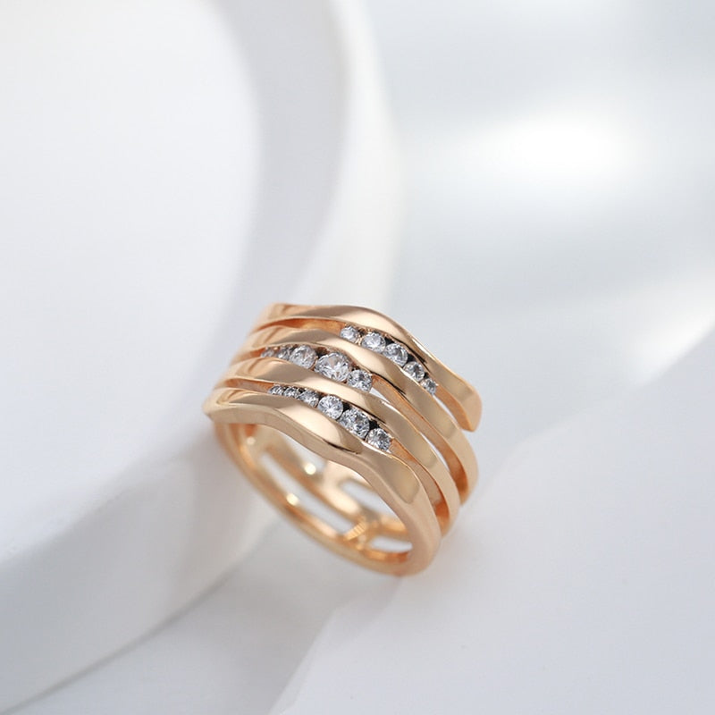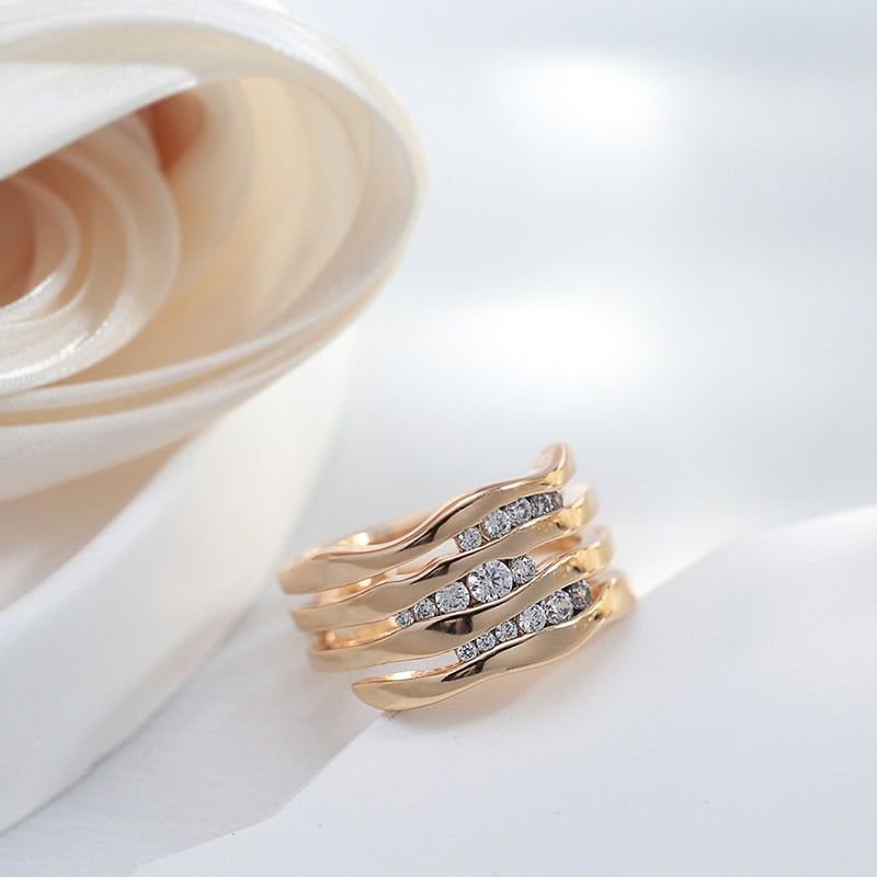 585 Gold Jewelry-MultiLayer Geometric 585 Gold Color Hollow Zircon Finger Rings for Women Modern Trendy Jewelry Daily Match Accessories