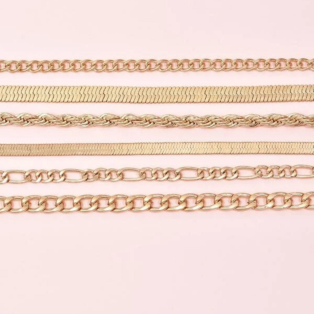 Anklets- 2022 Multilevel Beach Handmade Geometric Rope Chain Combination Bracelet Summer Boho Gold Multi-style Punk Snake Chain Jewelry